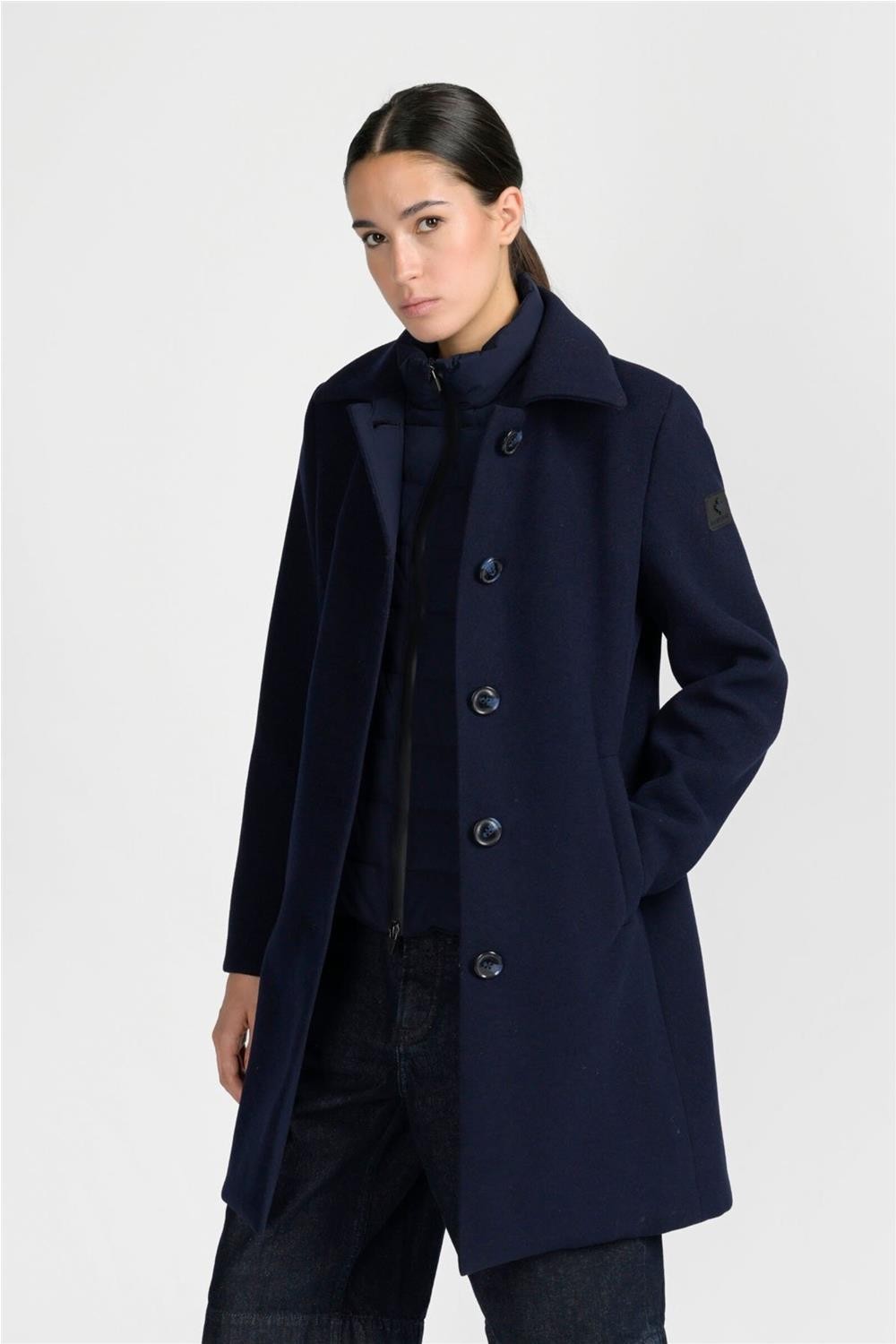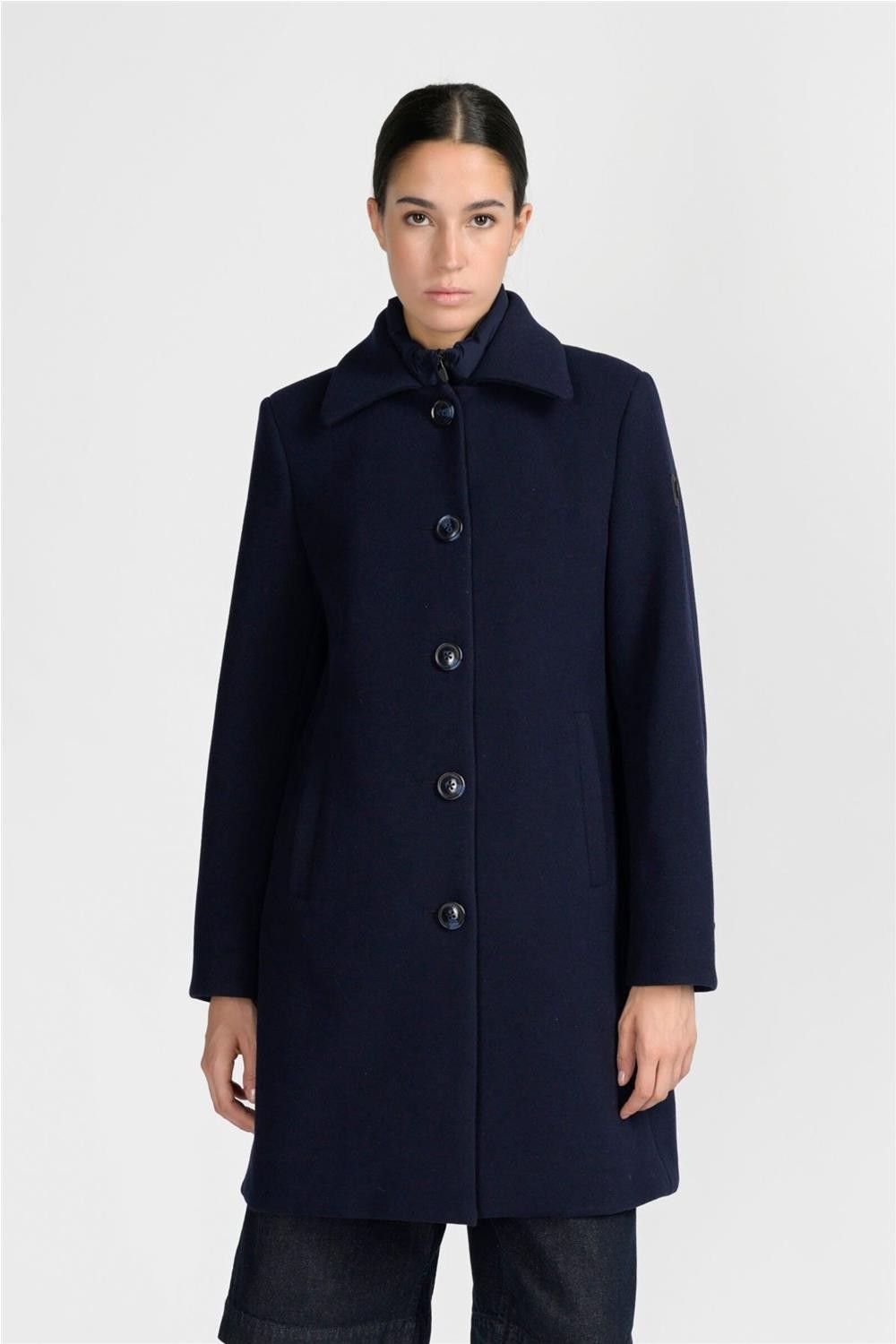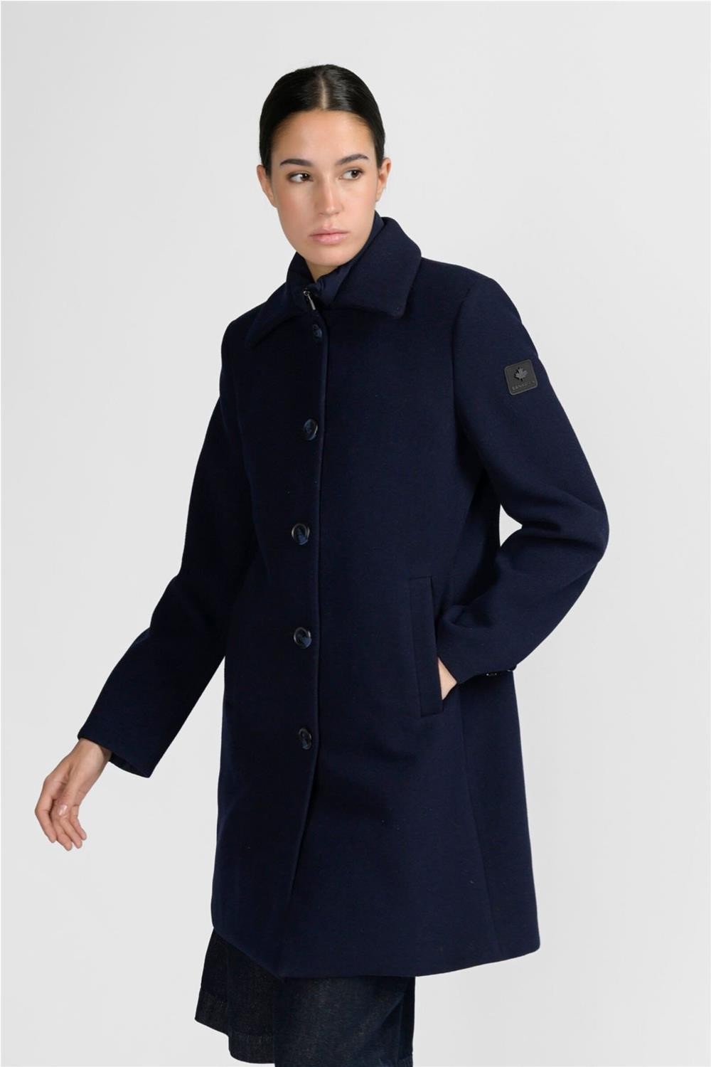 Abrigo largo medio de mujer Tachie Canadian lana cocida camisero azul marino camel CN.G225154W