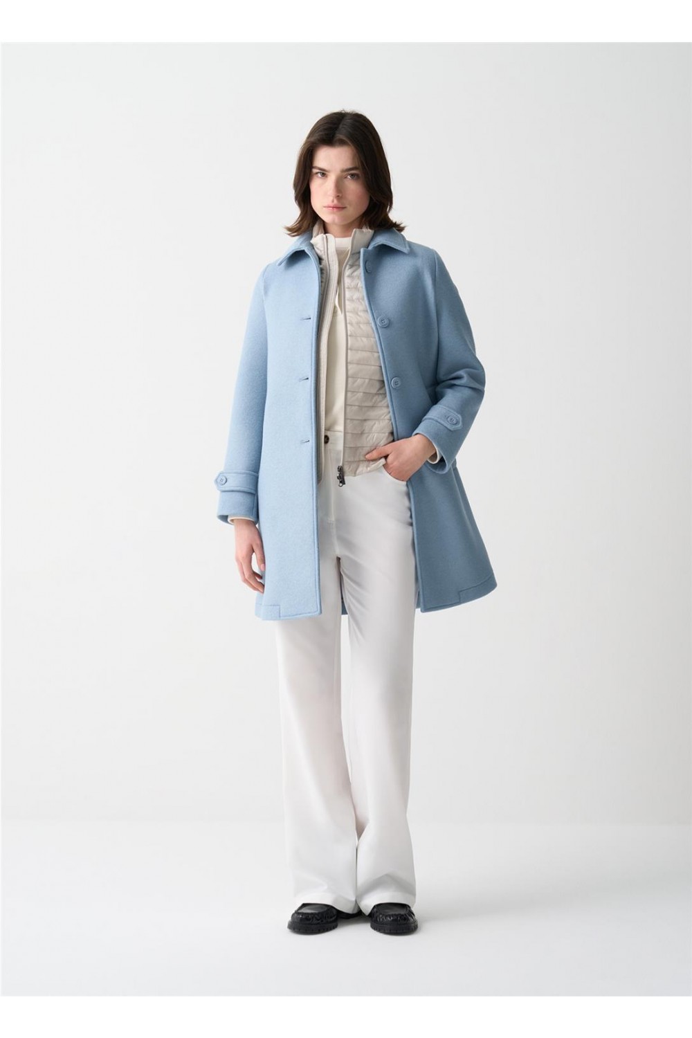Abrigo largo medio de mujer NIAGARA Colmar abotonadura sencilla trabilla azul niagara 2087