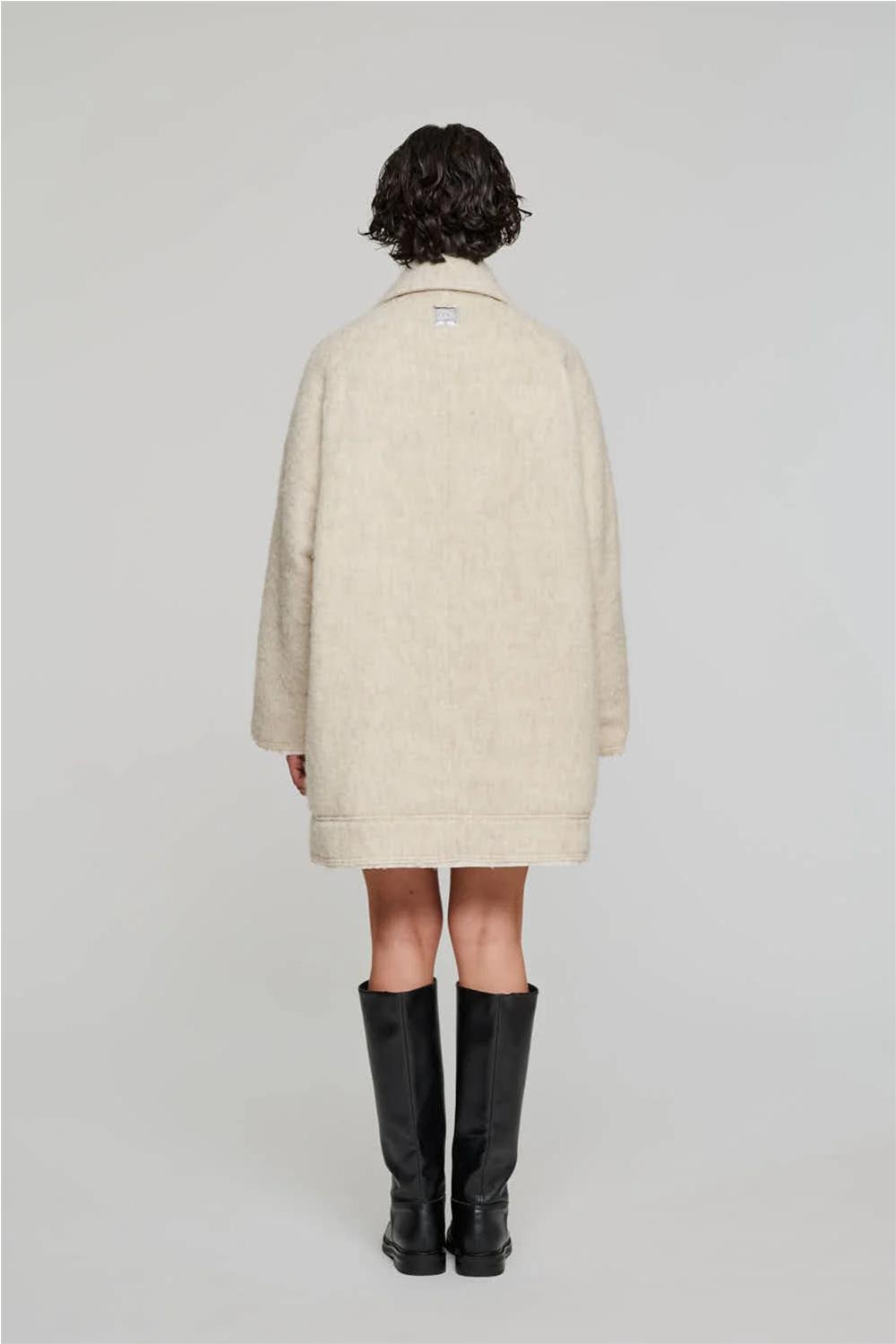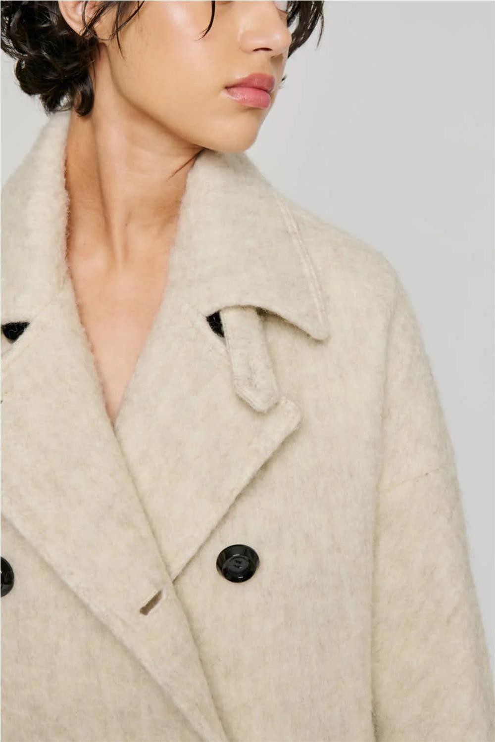 Abrigo corto de mujer lana blanca Off Wear doble botonadura elegante blanco lana 9318