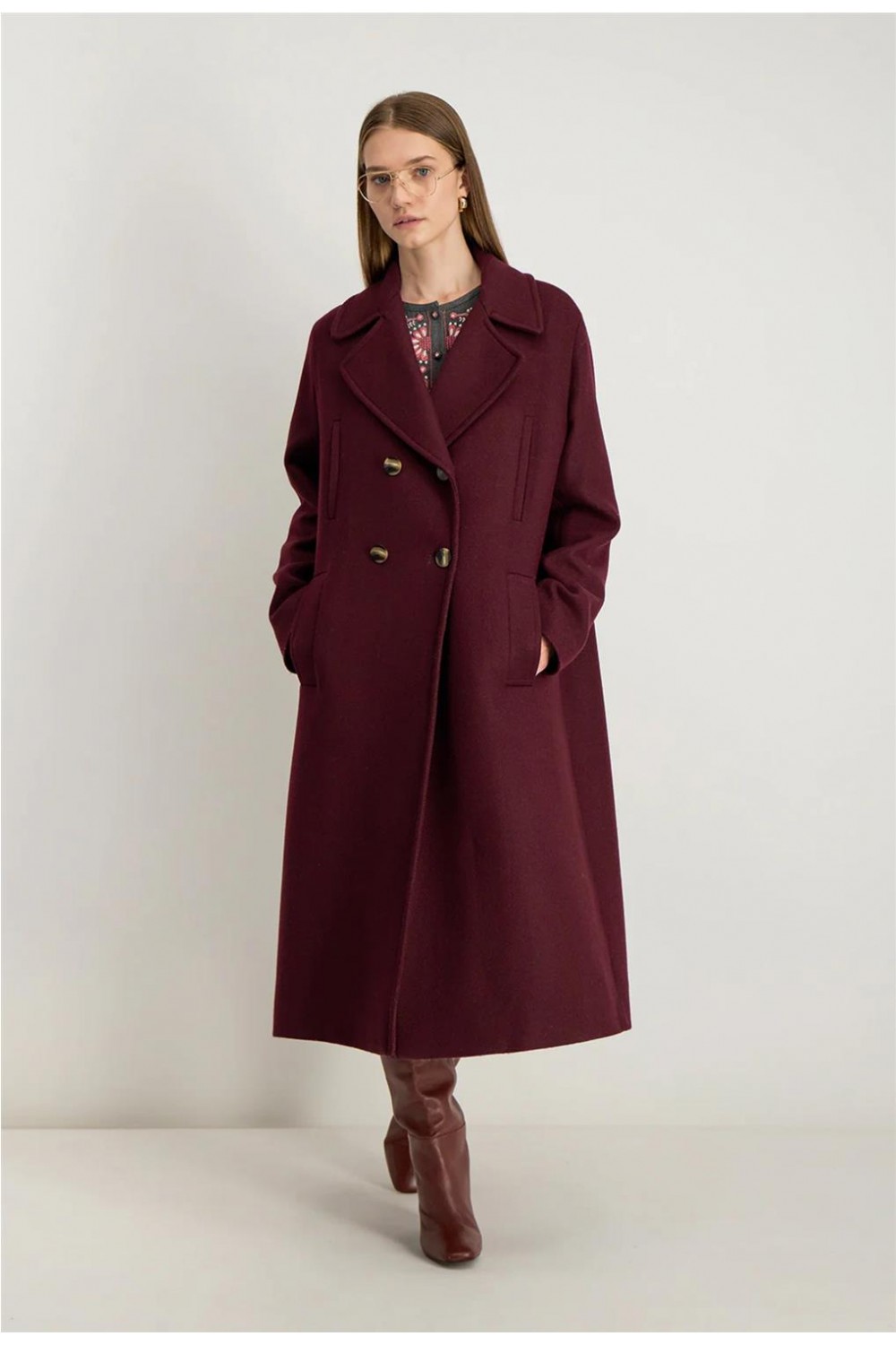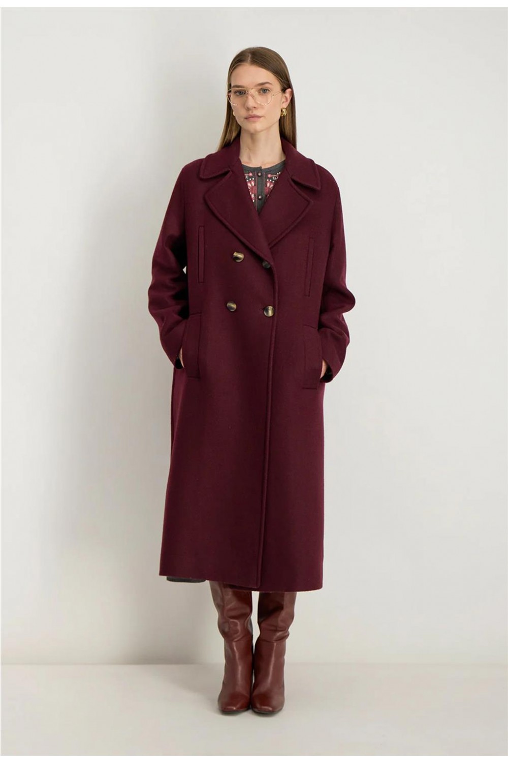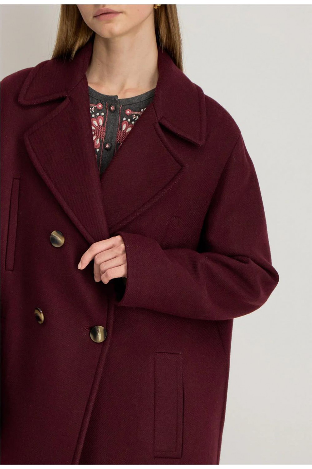 Abrigo largo de mujer NATALIA Stella Forest atemporal clásico ribeteados burdeos H25MA003