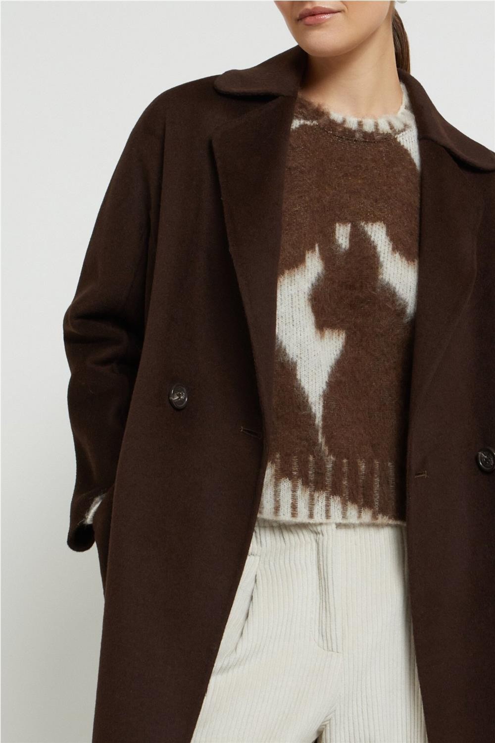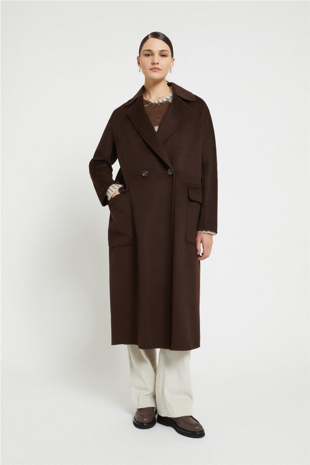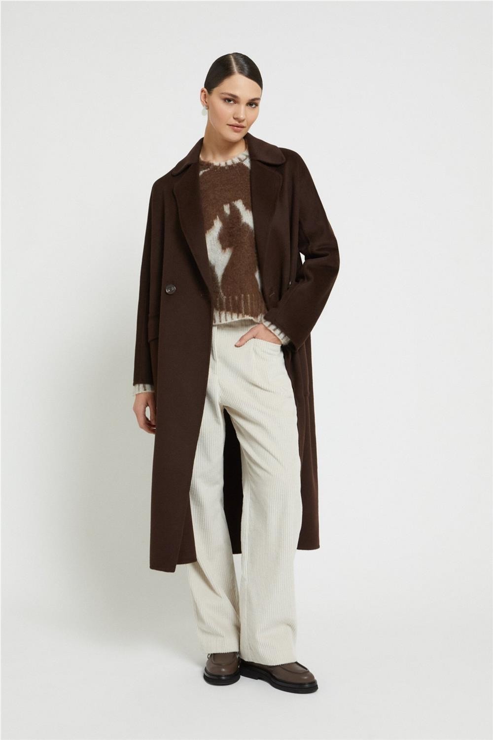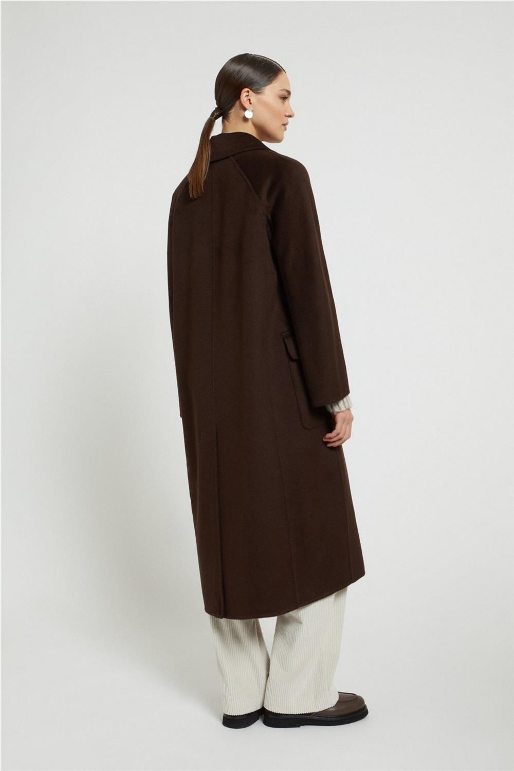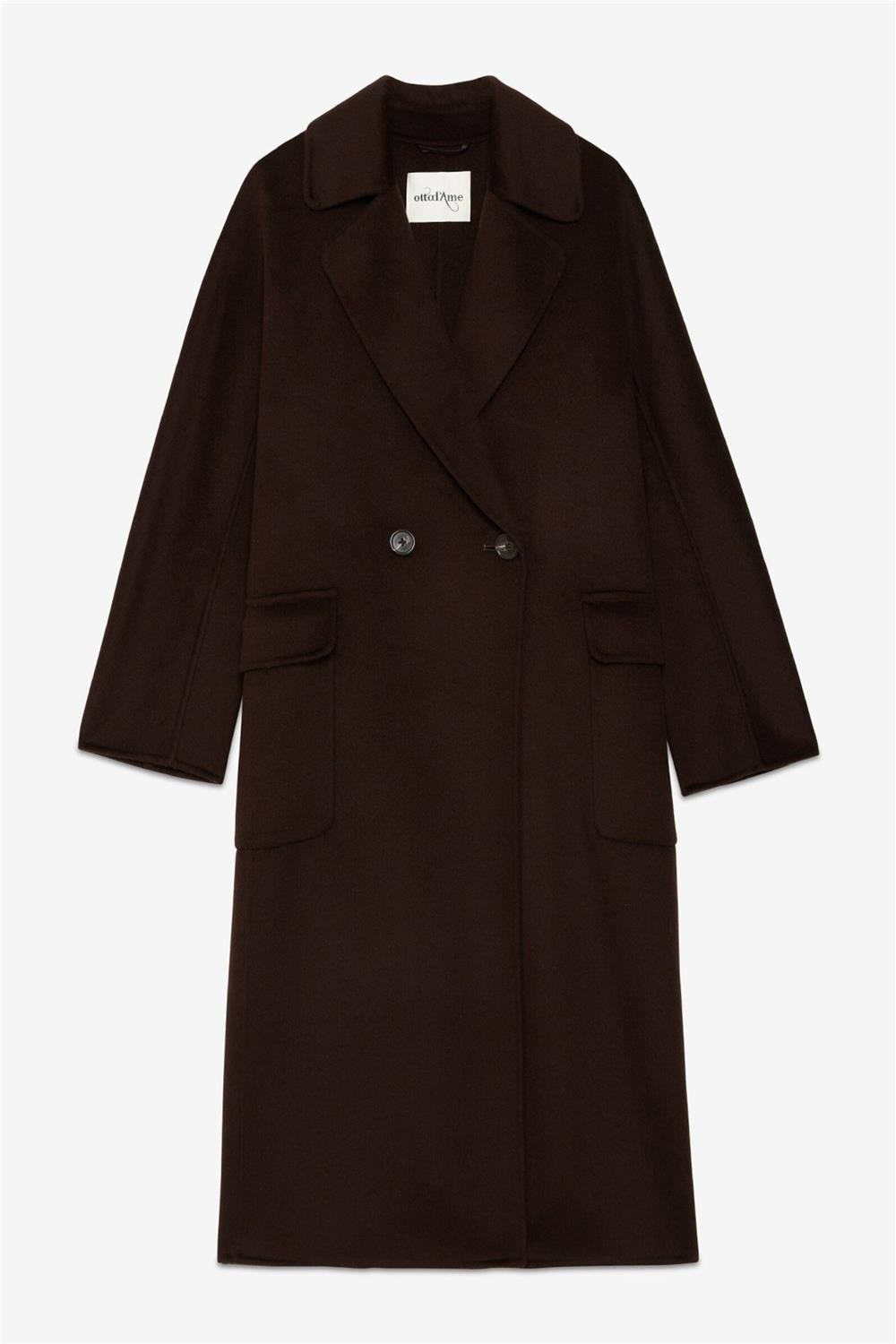 Abrigo largo de mujer cruzado Ottod Ame doble abotonadura lana crudo chocolate DJ0011-2