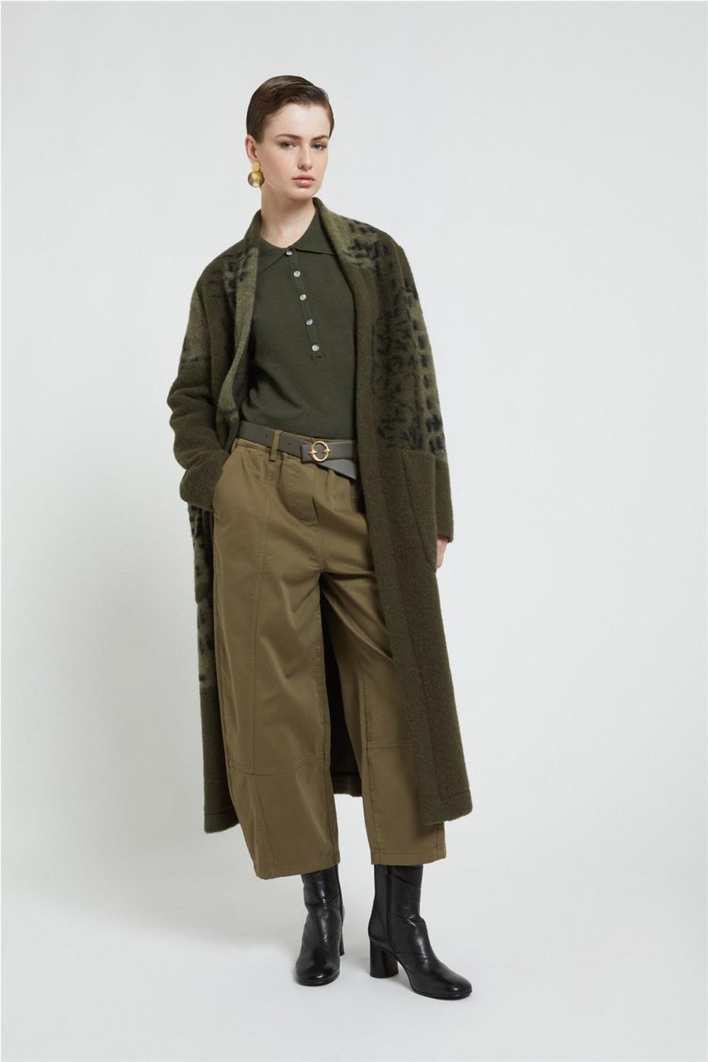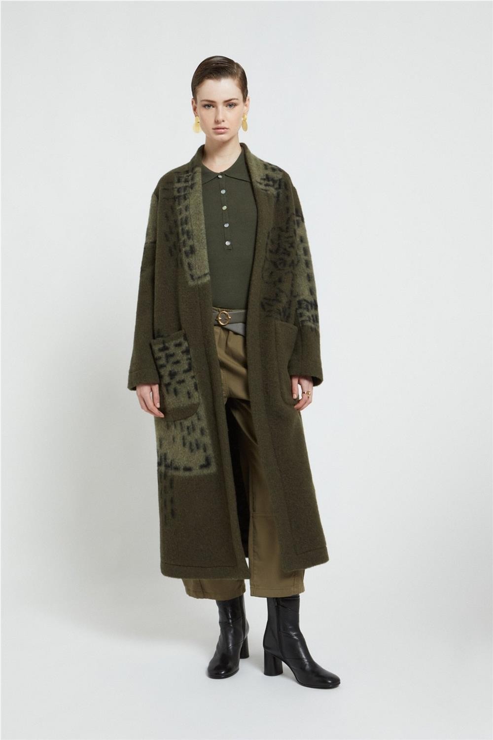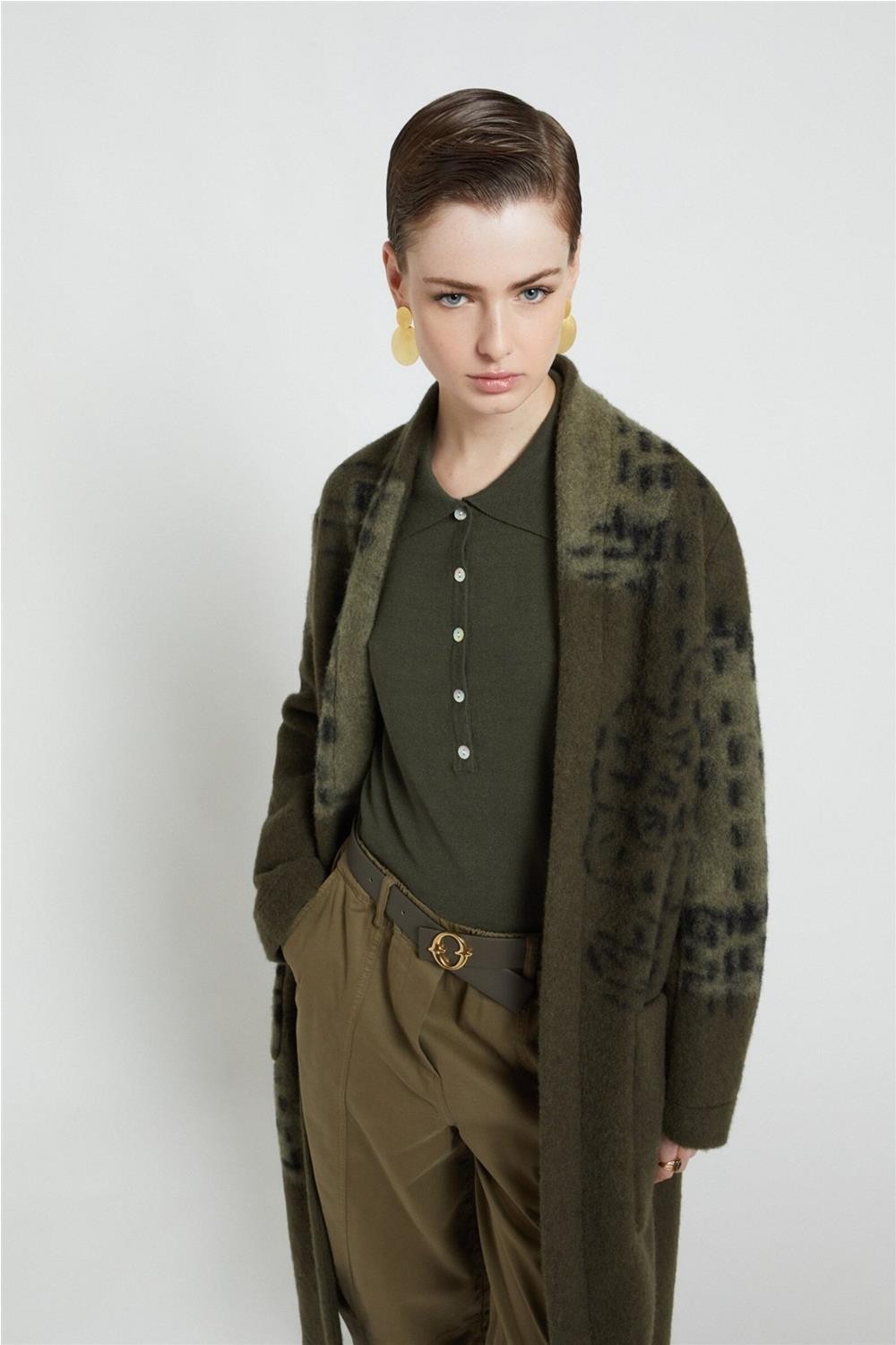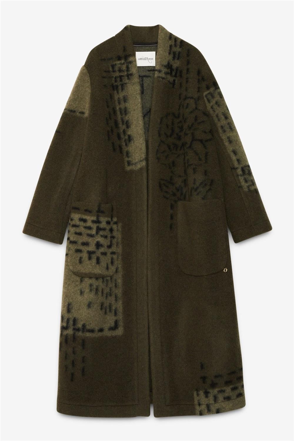 Abrigo largo de mujer jacquard Ottod Ame mezcla lana cálido kaki DJ0073