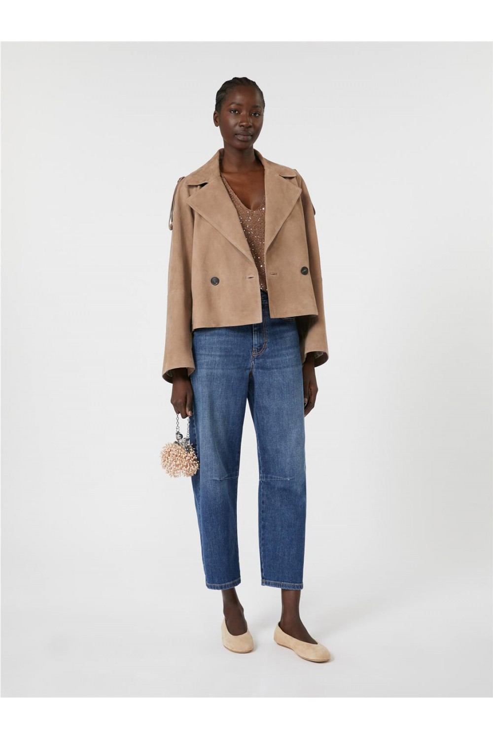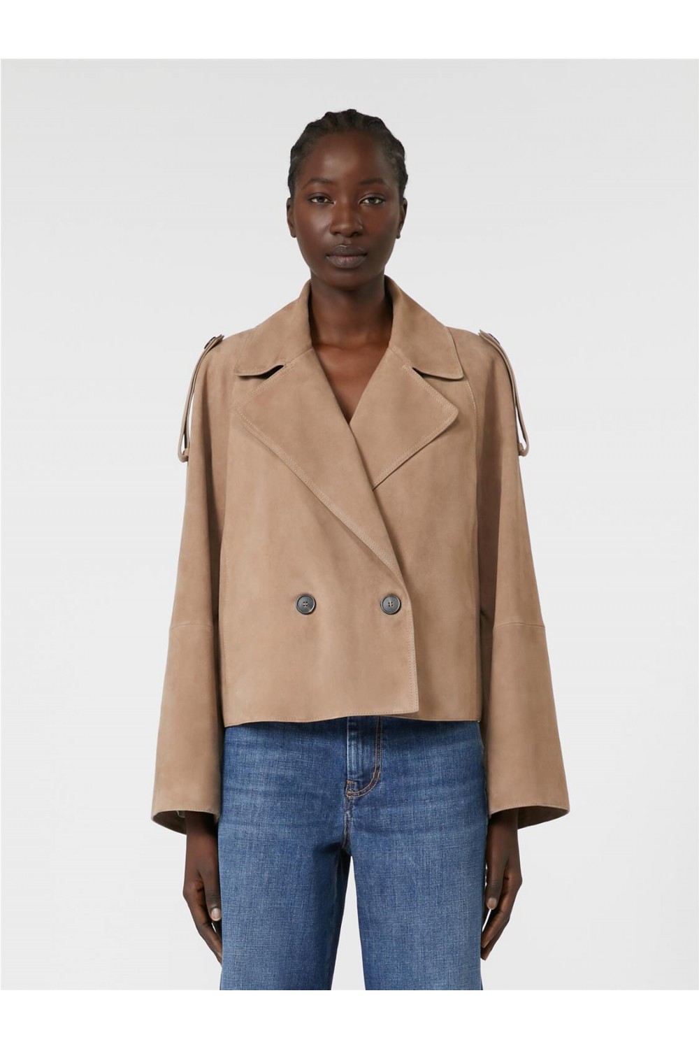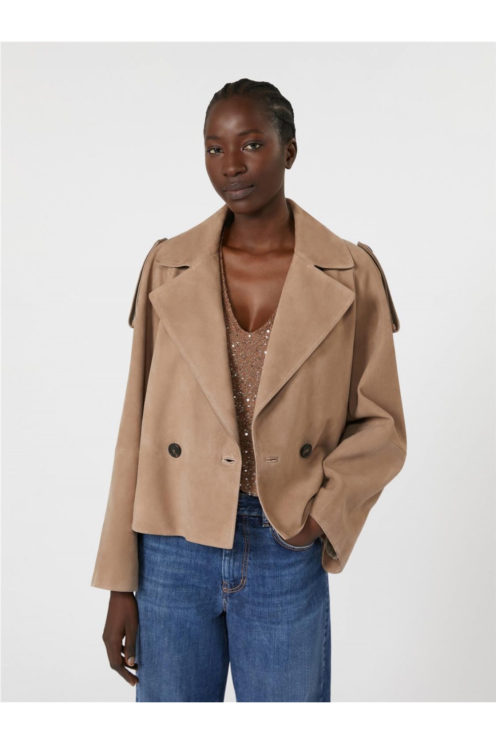 Abrigo corto de mujer Maga Max Mara gabardina ante cordero marrón MAGA
