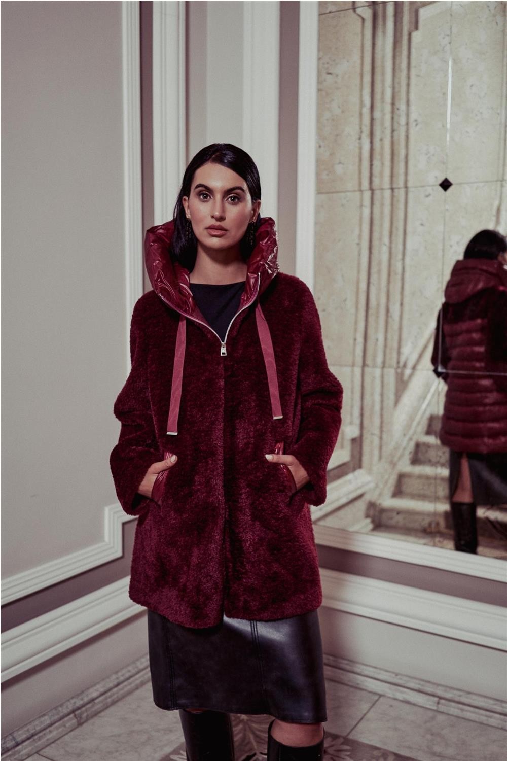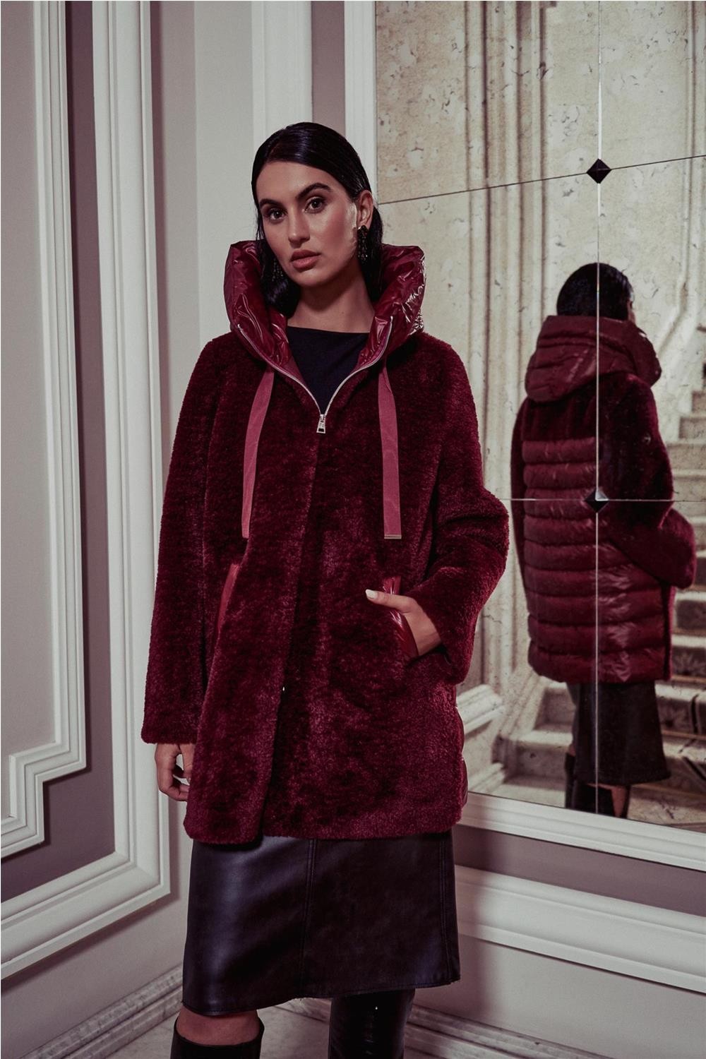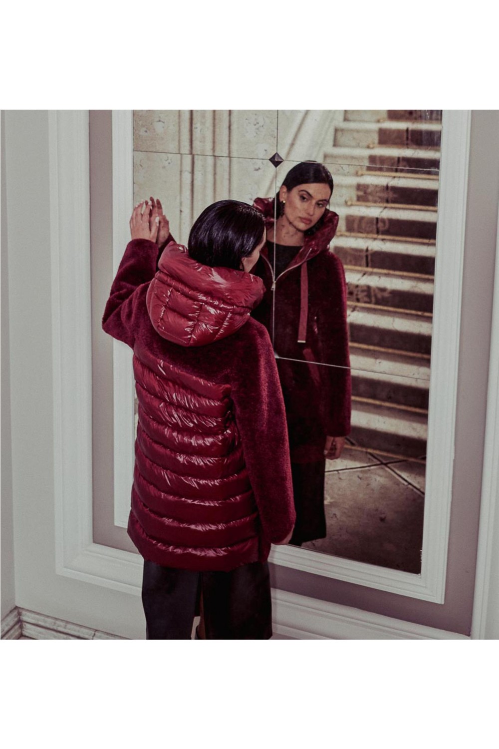 Abrigo largo medio de mujer Keiki Donjaz pelo suave acolchados burdeos KEIKI-1003