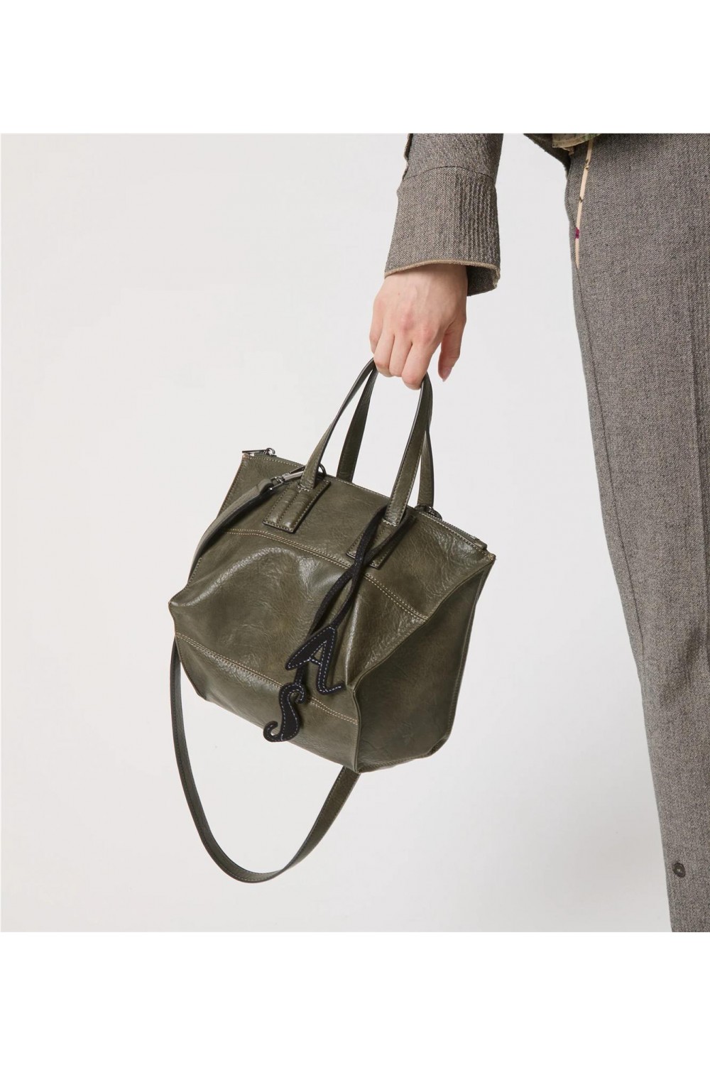 Bolso shopping de mujer charm Alessia Santi ecopiel espacioso cordón marrón verde SD90005