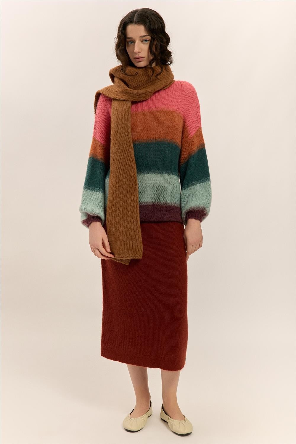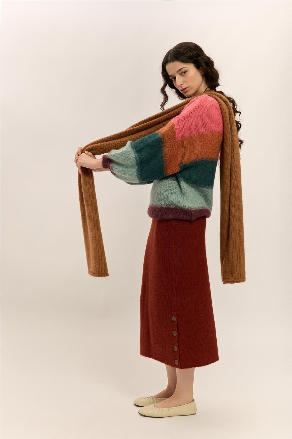 Bufanda de punto de mujer mohair Montoto calido acogedor canalé perla limón azalea almendra negro 58M5348