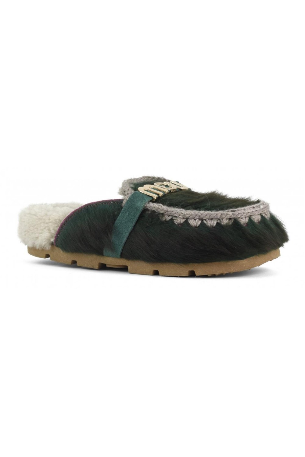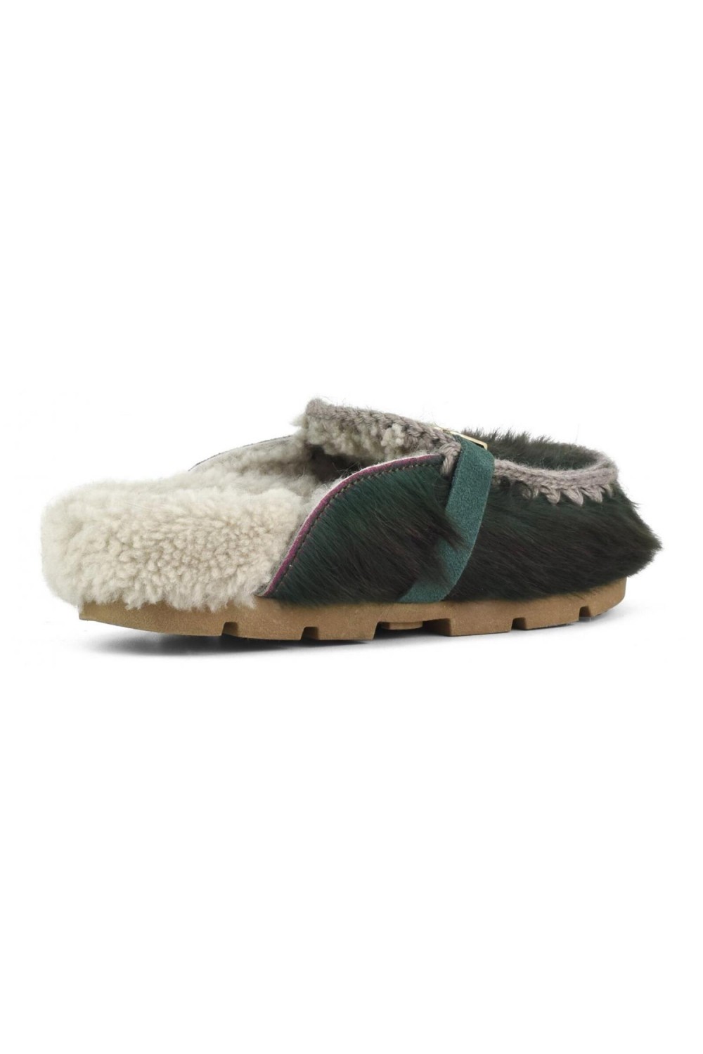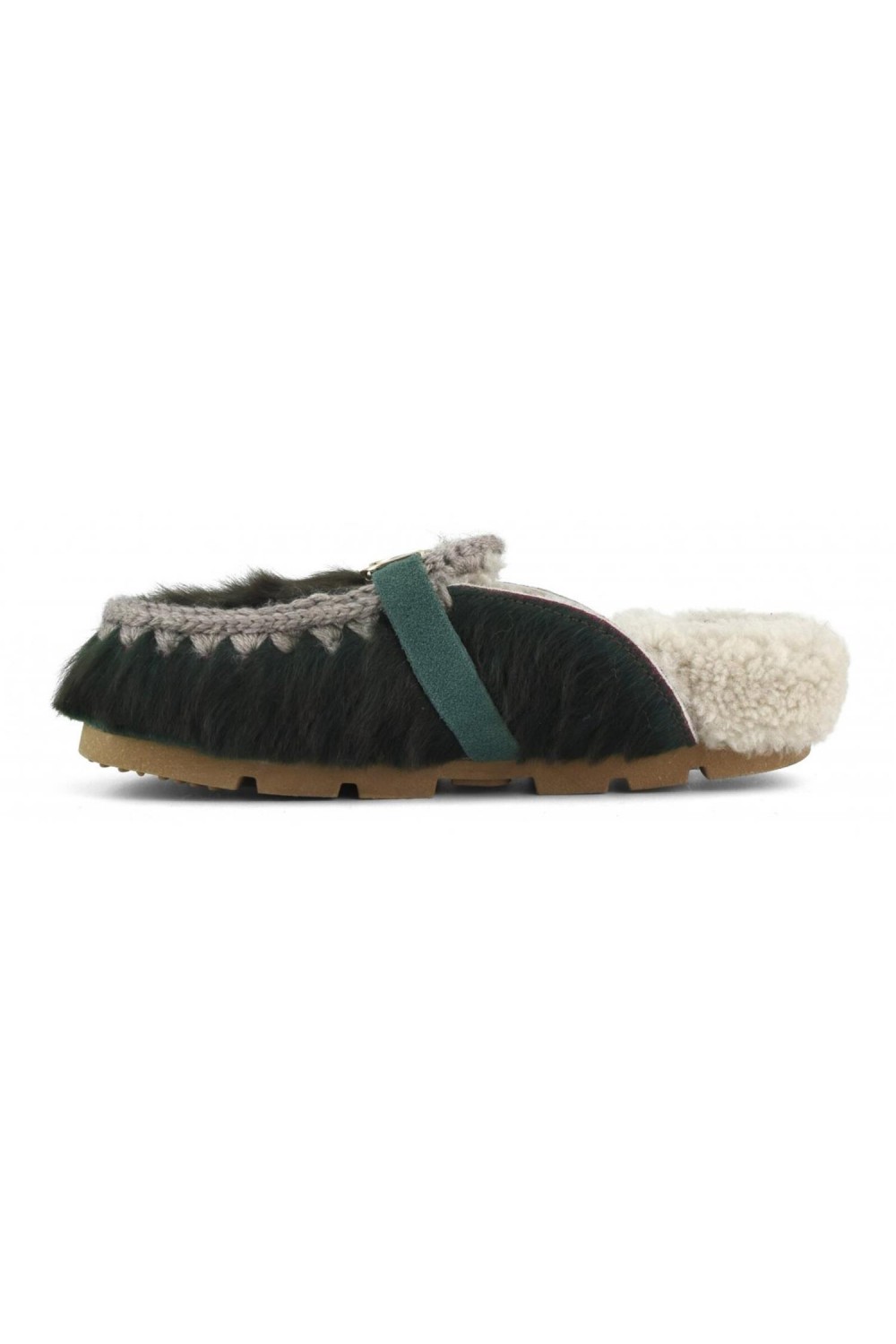 Zuecos de mujer Ponyskin Mou potro borreguillo EVA negro verde MU.FW431000D