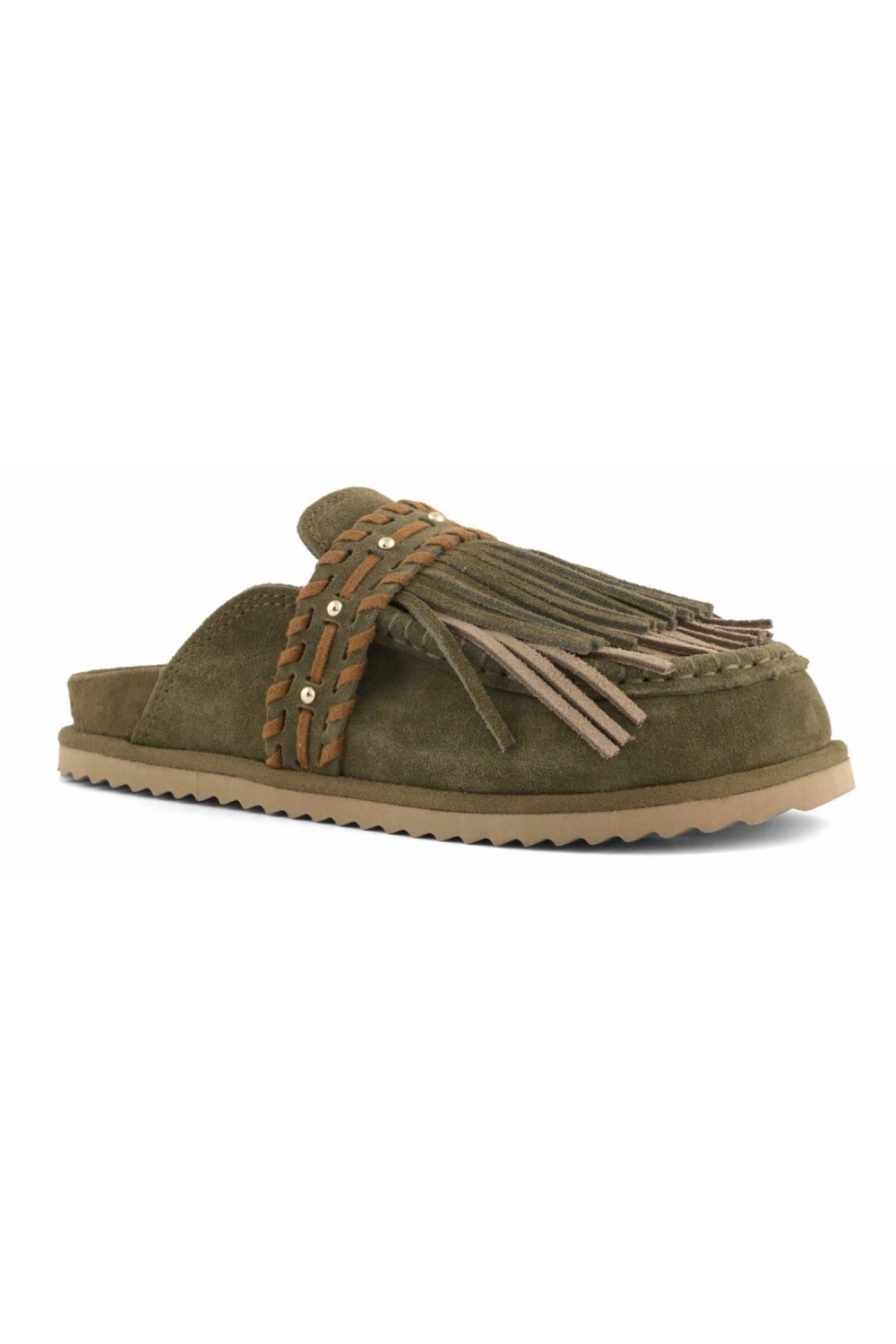 Zuecos de mujer SLOFIW Colors Of California flecos costuras tachuelas avellana militar HC_BIOW604