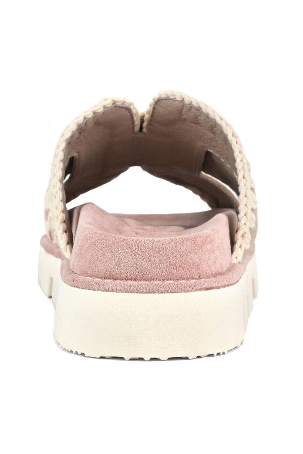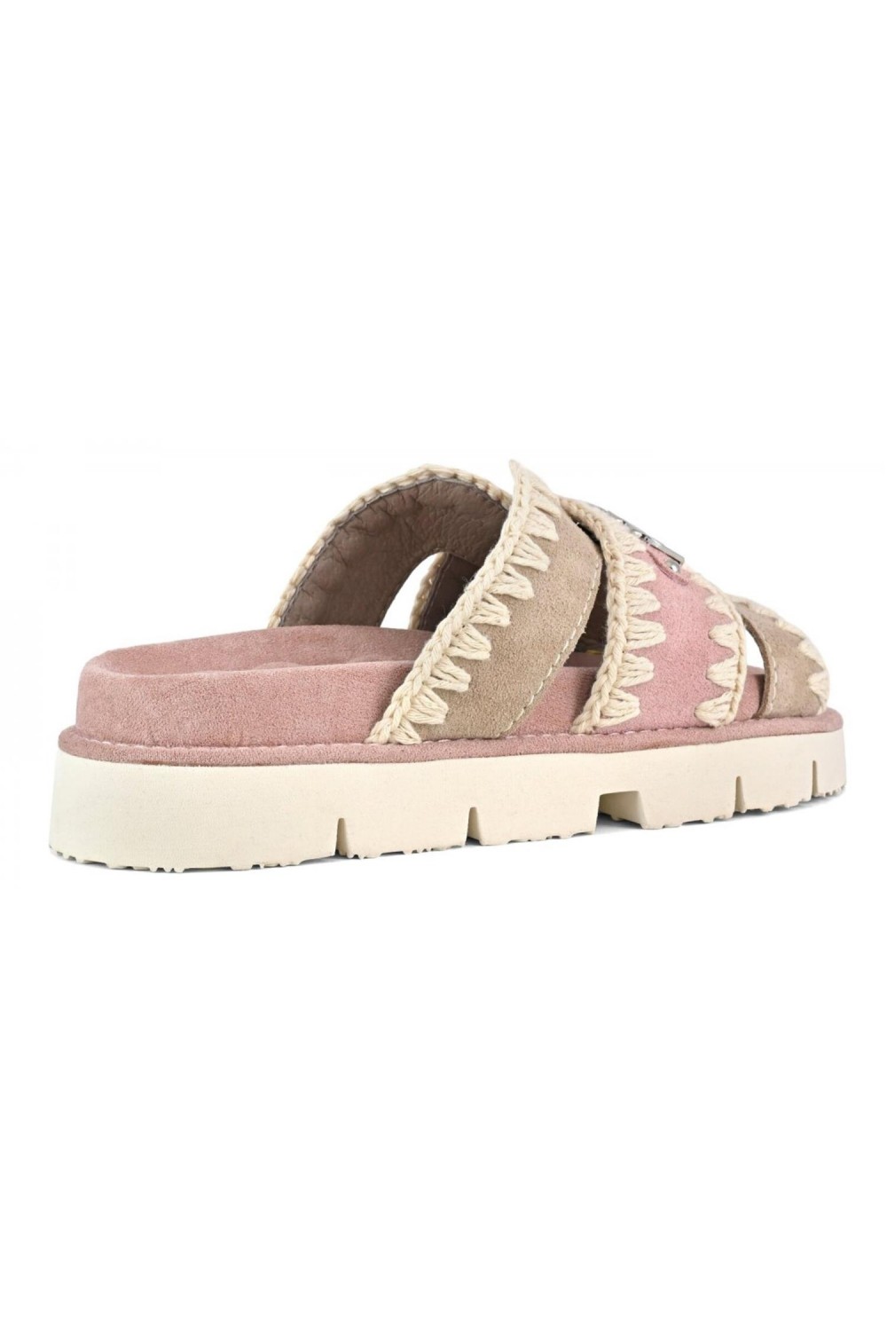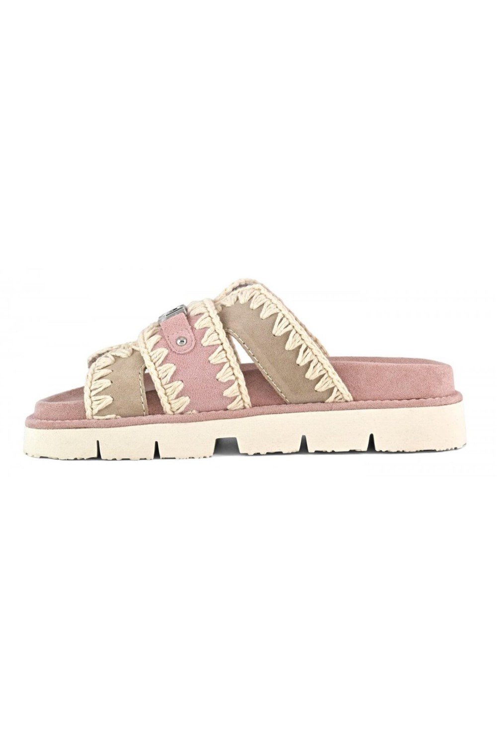 Sandalias de diseño bio que combinan comodidad y estilo artesanal. Acabado bicolor en piel de alta calidad y el icónico logotipo metálico de la marca en la tira frontal. Costuras de lana tejidas a mano, ADN de Mou, sobre una plantilla ergonómica que se adapta al pie. Con una suela ligera y resistente, son perfectas para un look de verano sofisticado, relajado y con un toque premium. Composición.- Exterior: 100% Piel de oveja / Serraje; Plantilla: Ergonómica forrada en piel; Suela: EVA ligera.