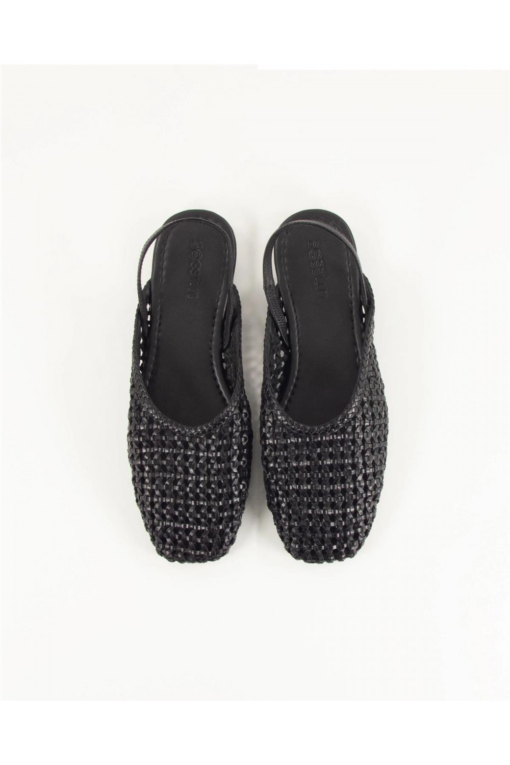Manoletinas de mujer Vana Sessun piel trenzada destalonada negro VANA
