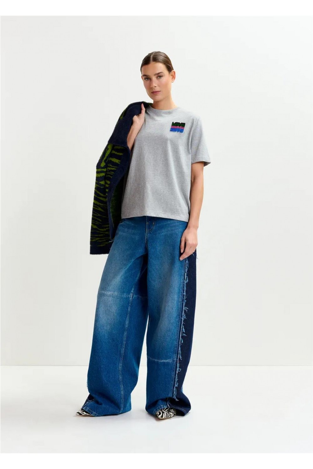 Camiseta de mujer IMASTER Essentiel punto bordado lentejuelas blanco gris IMASTER