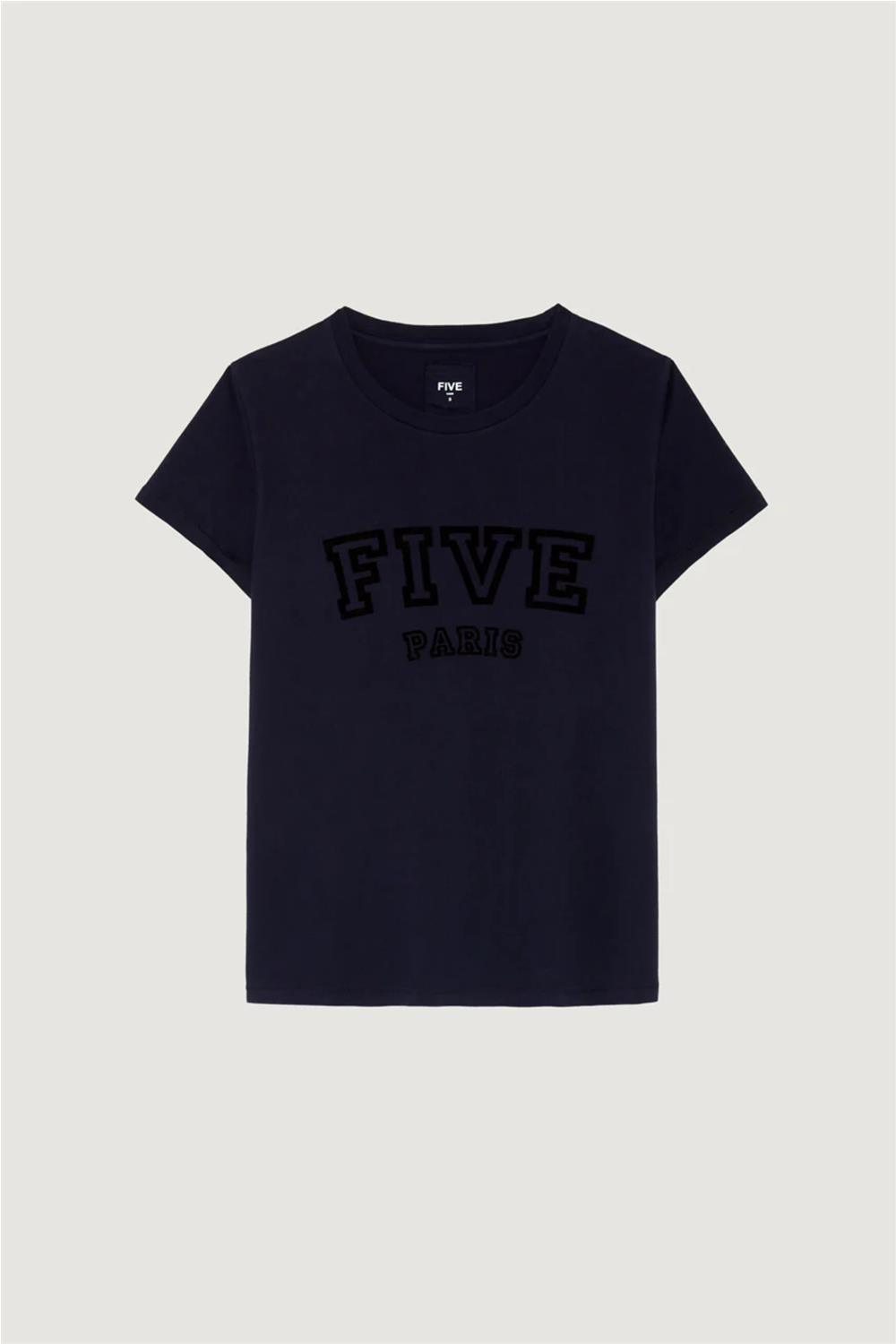 Camiseta de mujer Paris Five estampado básico casual azul marino TSH2511