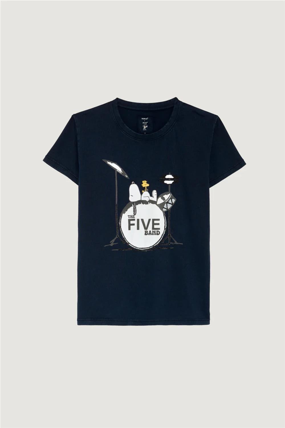 Camiseta de mujer Snoopy Band Five básico moderno divertido azul marino TSH2520