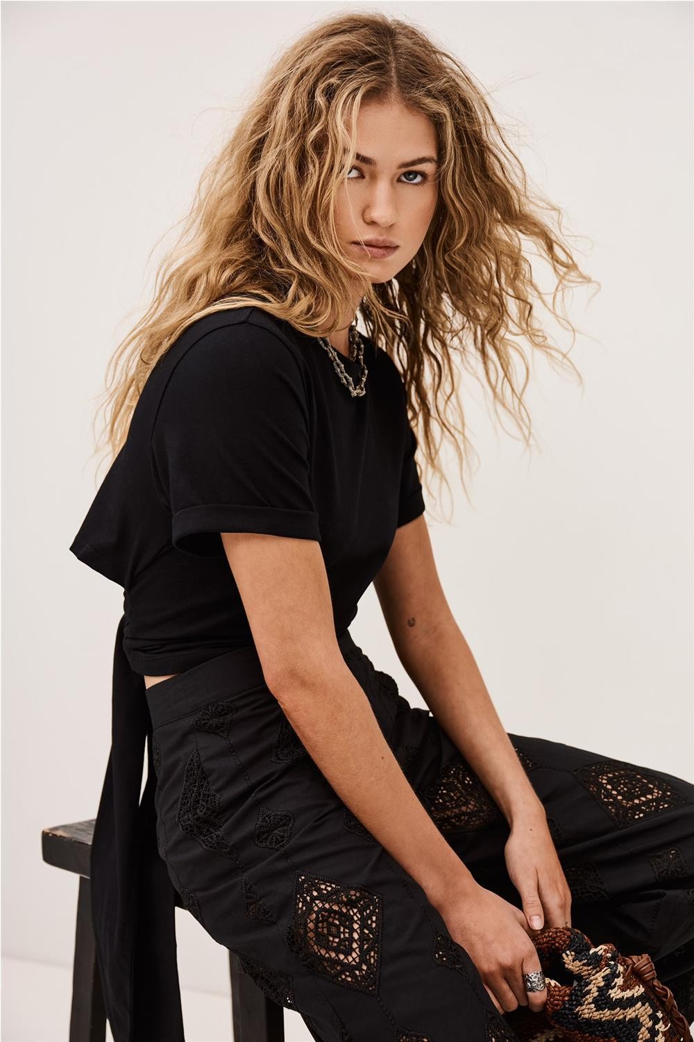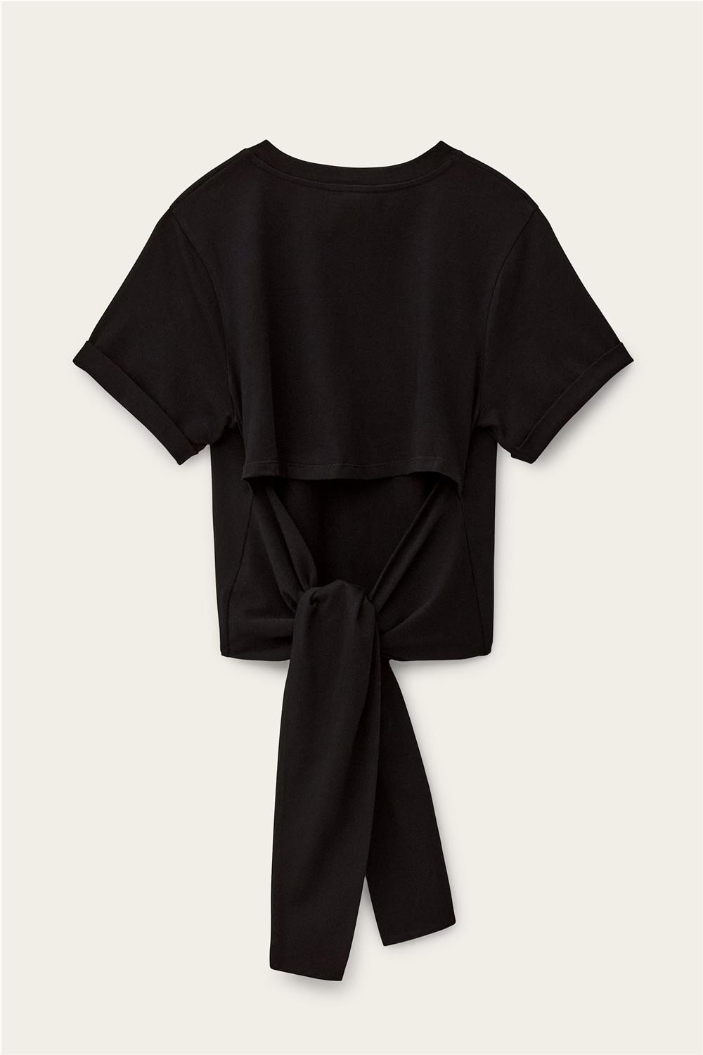 Esta camiseta, confeccionada en algodón de origen ecológico con un toque de elastano, destaca por su original diseño de manga corta con solapas. Presenta un cuello redondo clásico que contrasta con una sugerente espalda abierta, detallada con cintas para atar que permiten un ajuste personalizado. Fabricada en Portugal, esta pieza combina comodidad y estilo vanguardista, siendo una opción ideal para completar looks urbanos con un toque femenino y diferenciador. Composición: 96% Algodón 4% Elastan