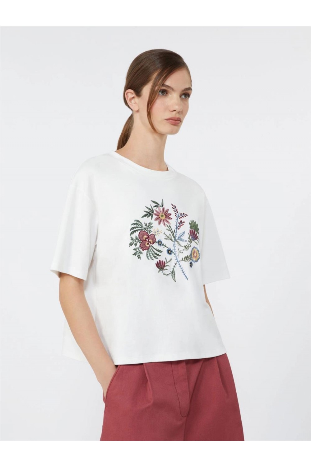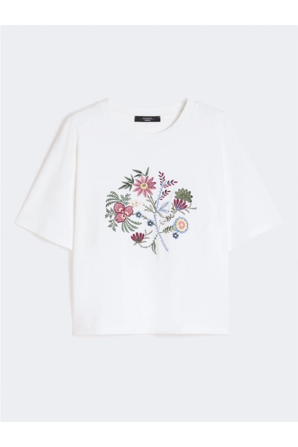 Camiseta de mujer WKDSABATO Max Mara punto algodón mariposa blanco crudo WKDSABATO
