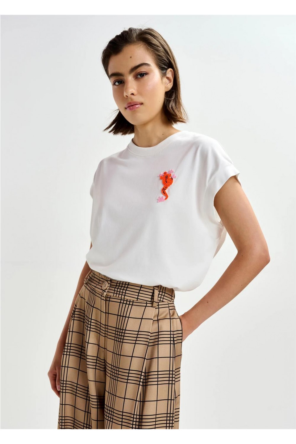Camiseta de mujer JUNGALA Essentiel punto algodón orgánico azul marino blanco roto JUNGALA
