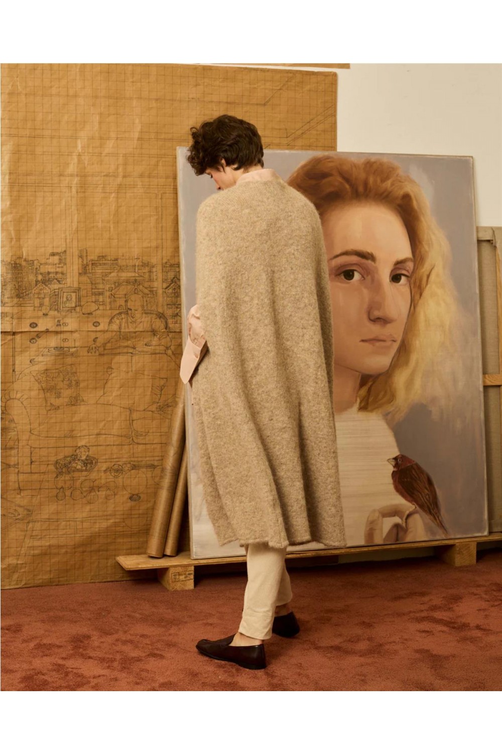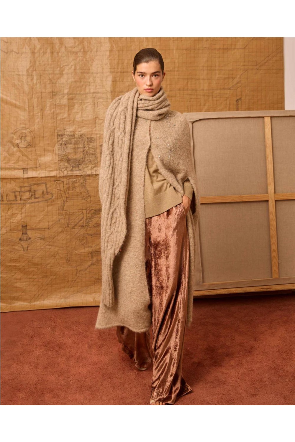 Capa de punto de mujer chaqueta Is Coming flores bordadas aberturas beige gris 735.CAP.7363