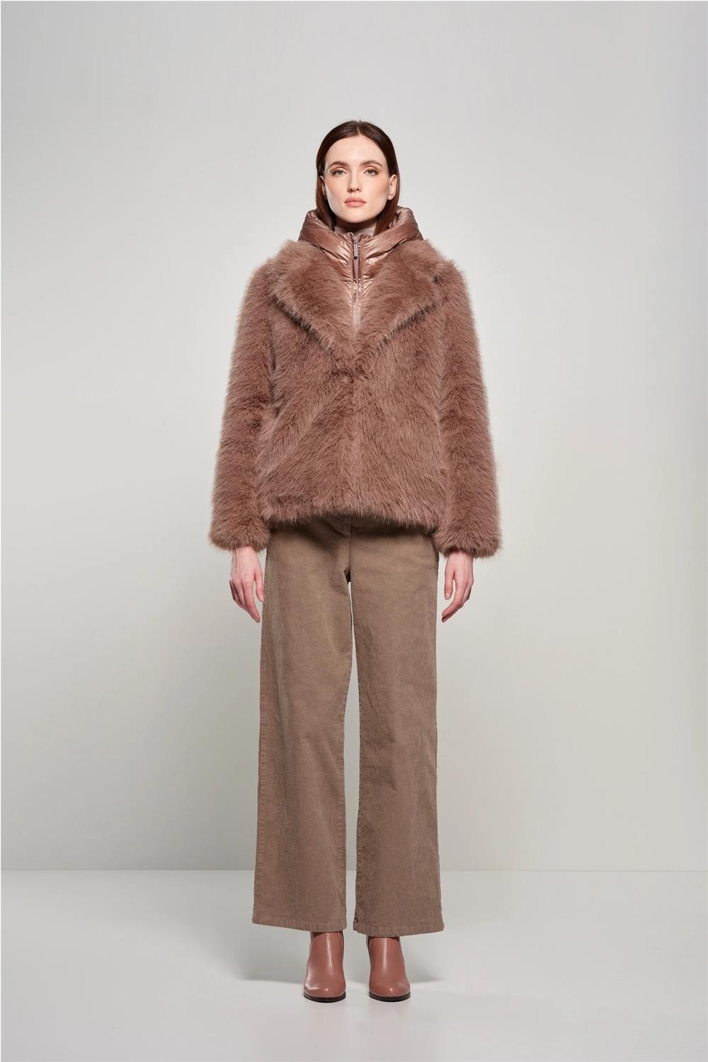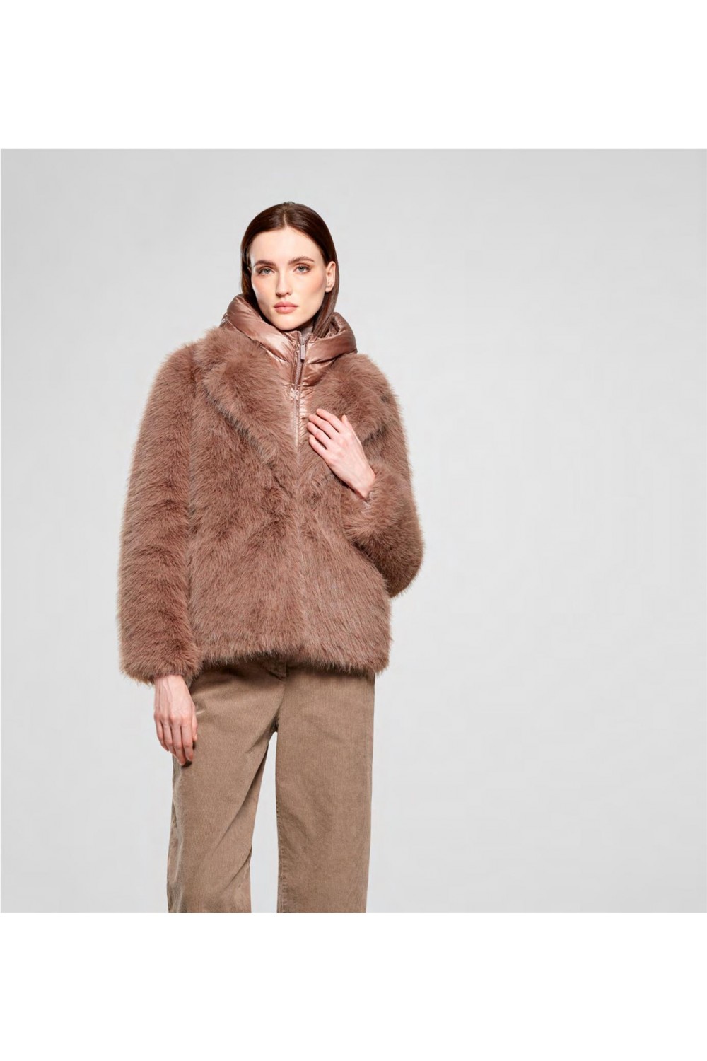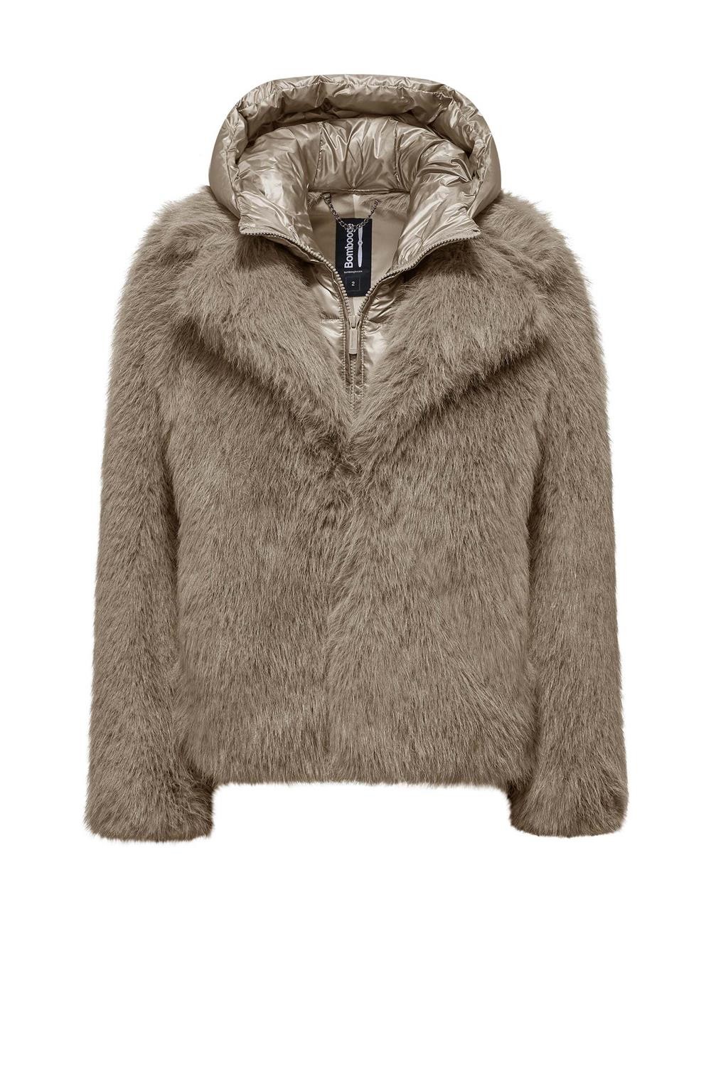 Cazadora corta de mujer París Bomboogie pelo sintético capucha gris pardo GW9148