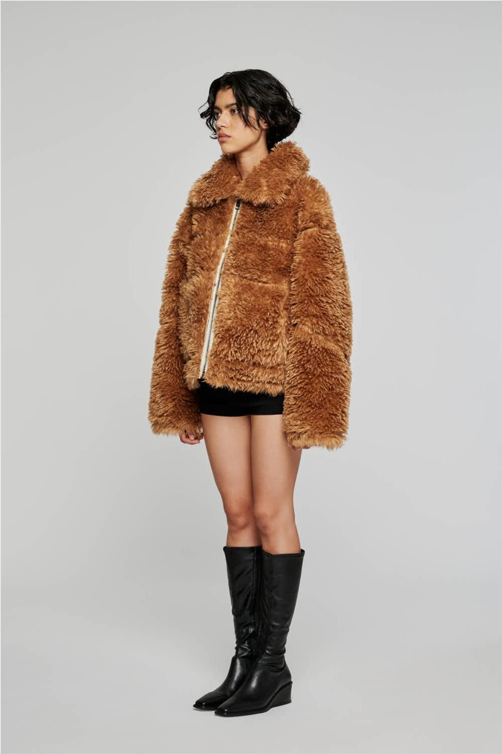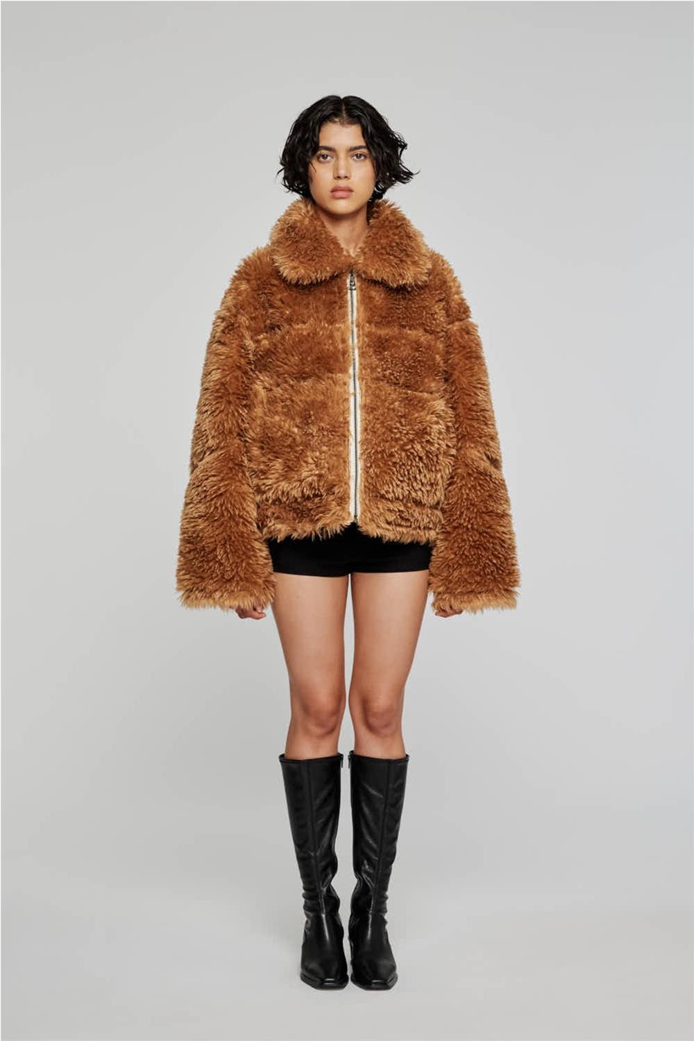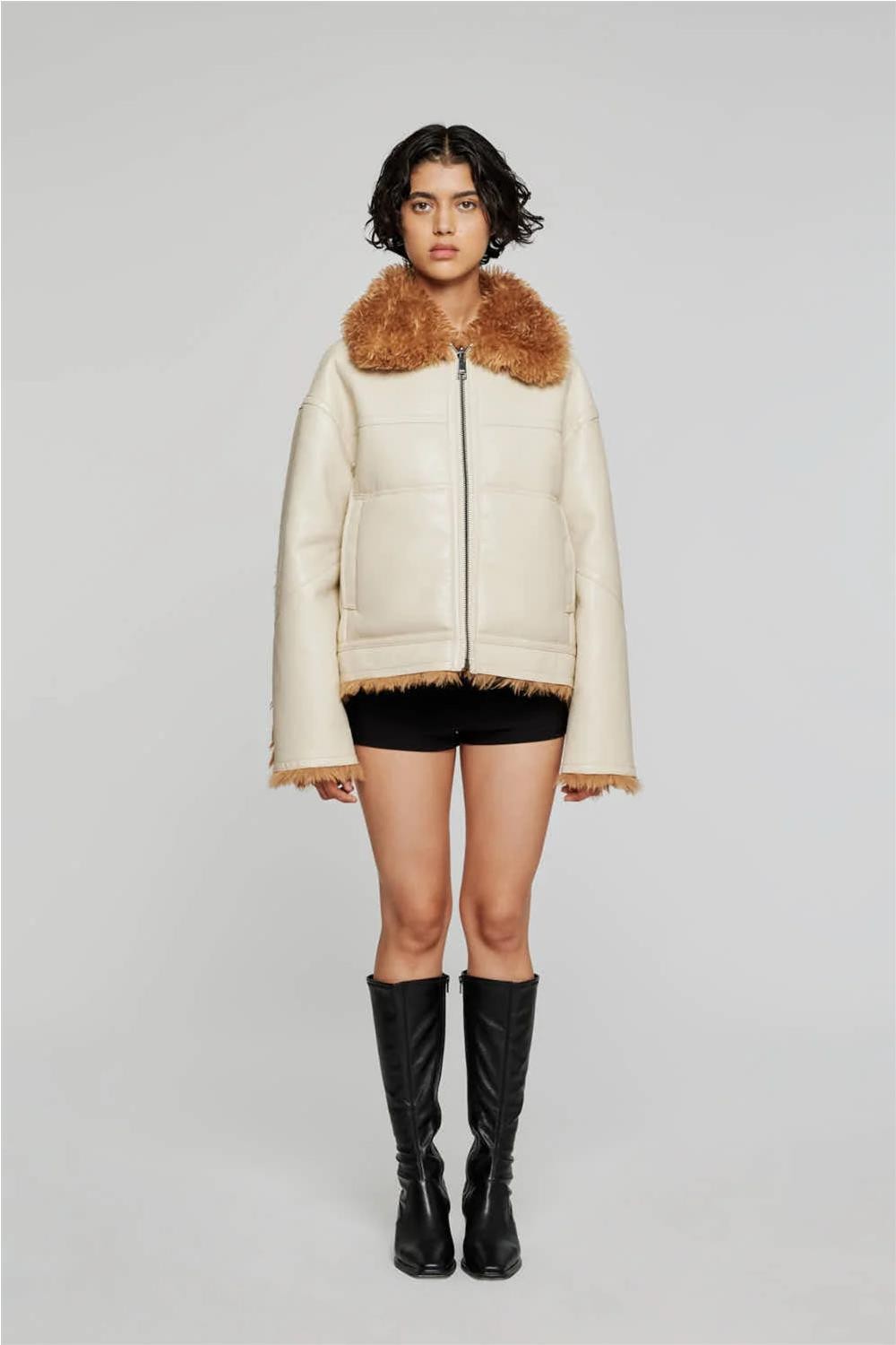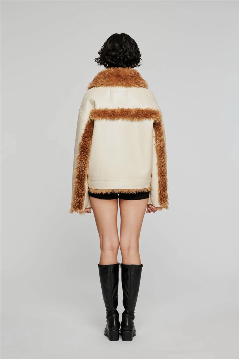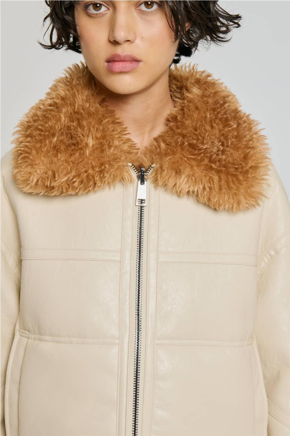 Cazadora de mujer reversible Off Wear imitación piel borrego marfil/marrón 9332