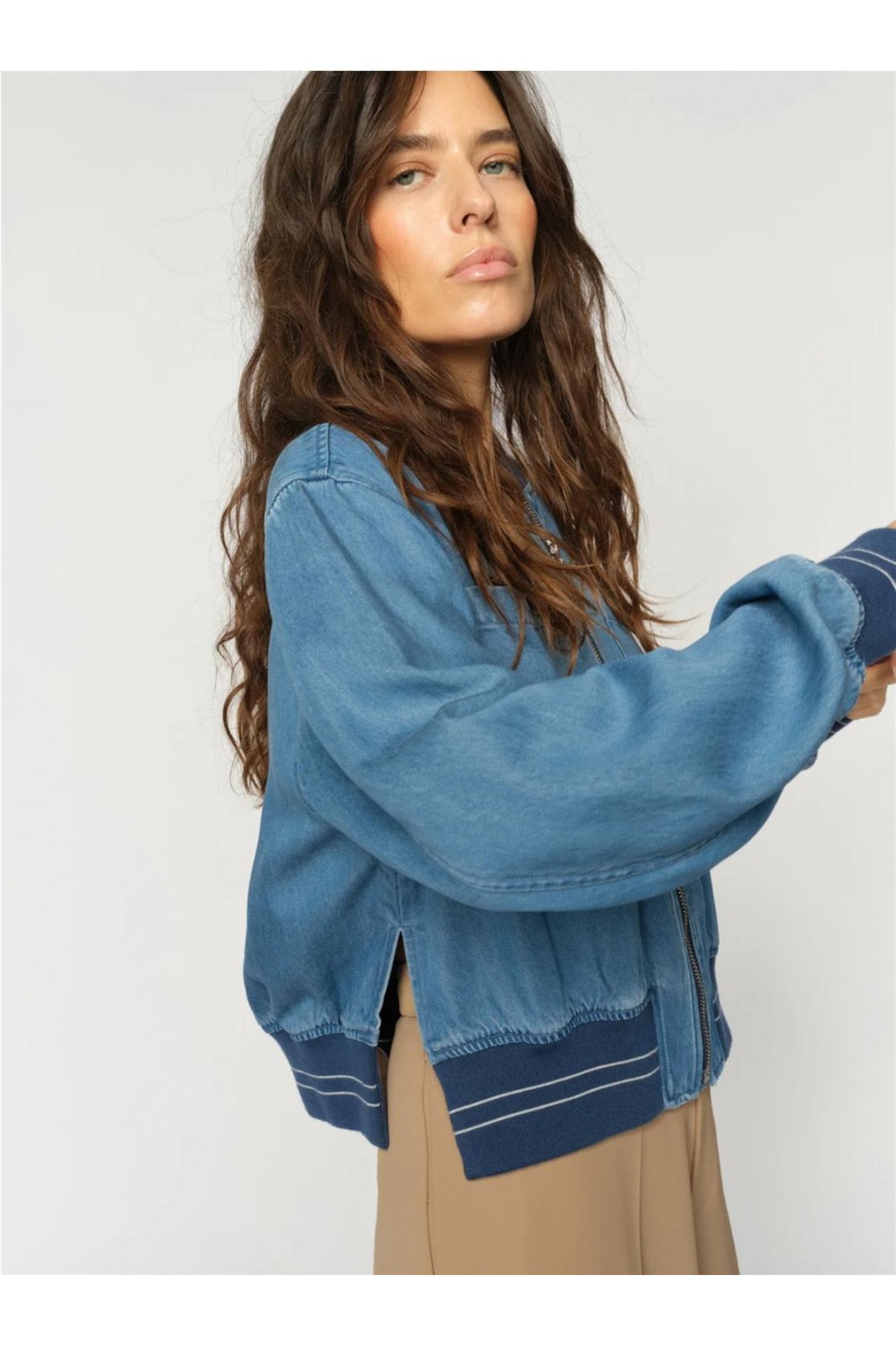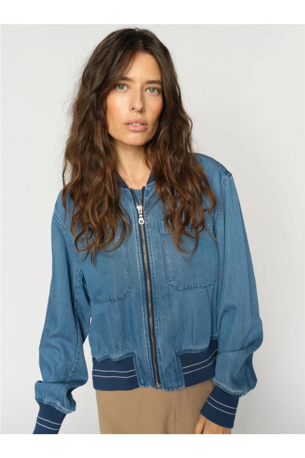 Cazadora vaquera de mujer MMCate Onyx MOS MOSH cremallera bomber elásticos azul claro denim 176620