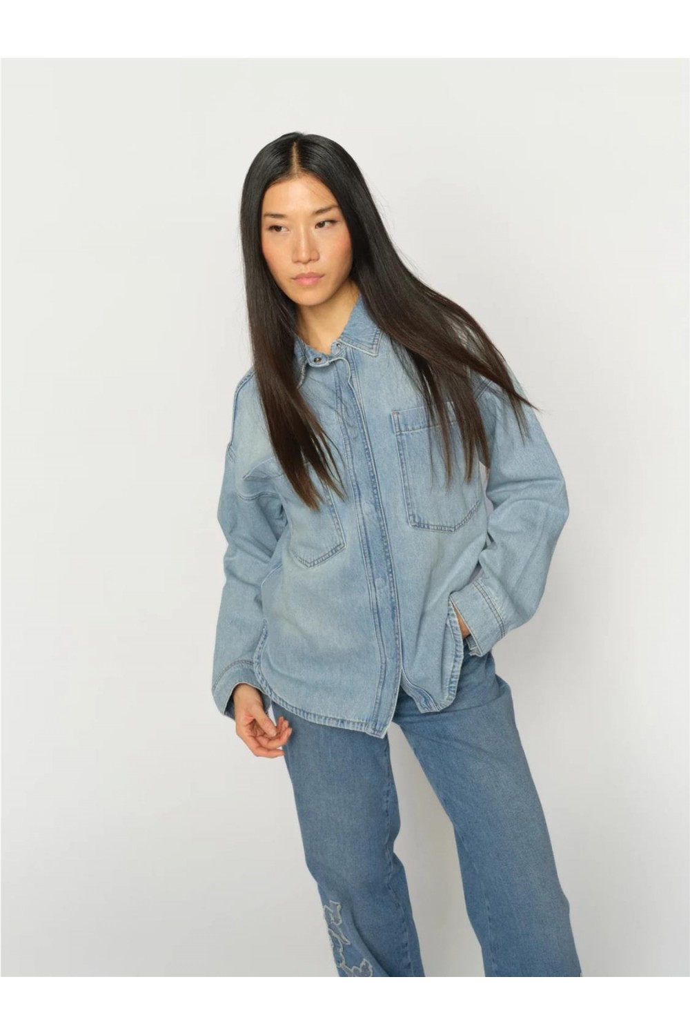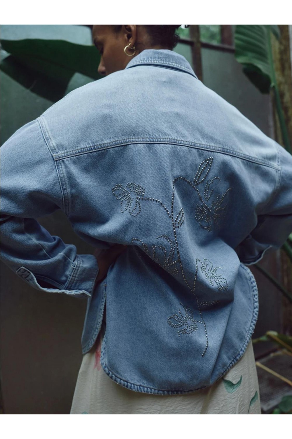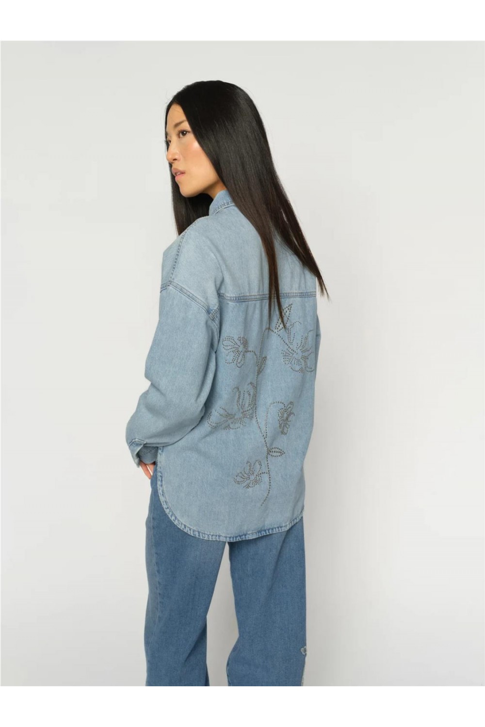 Cazadora vaquera de mujer Emm MOS MOSH strass flores sobrecamisa azul claro 178520