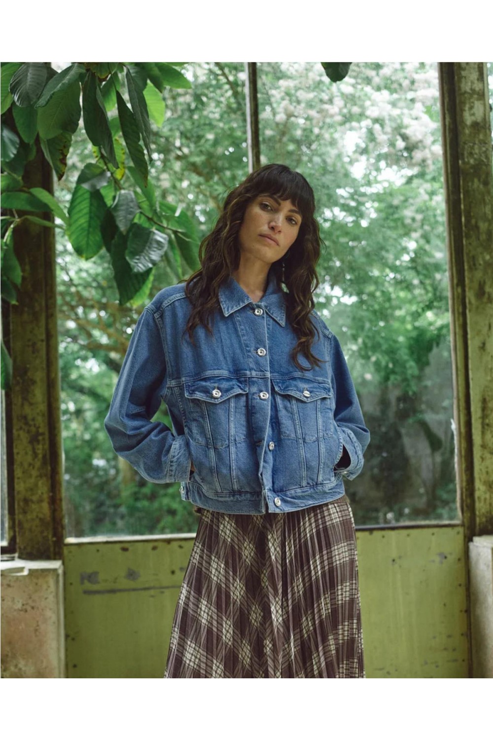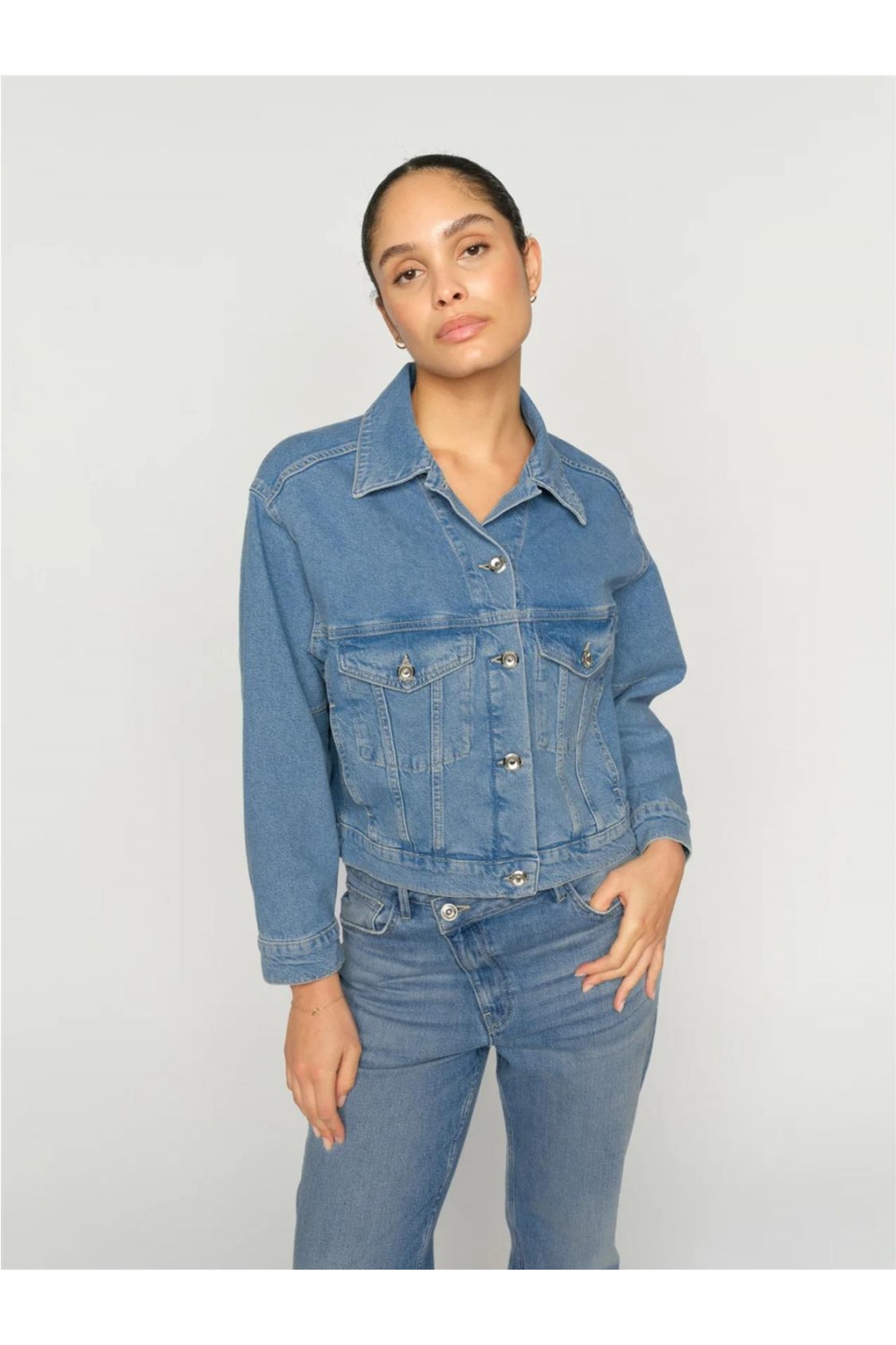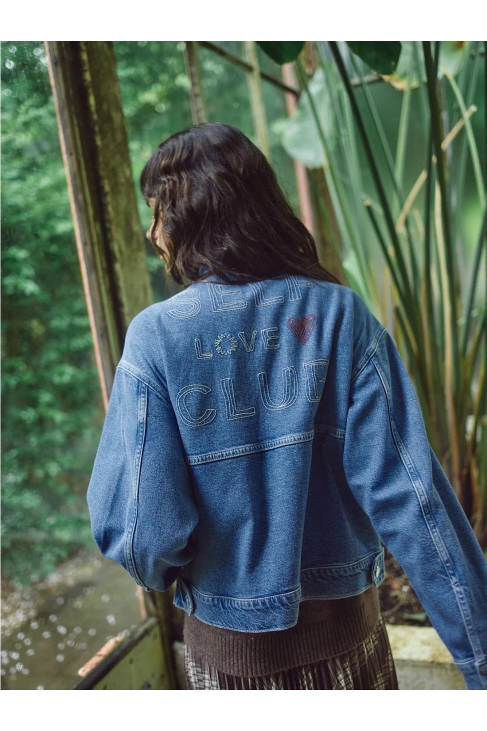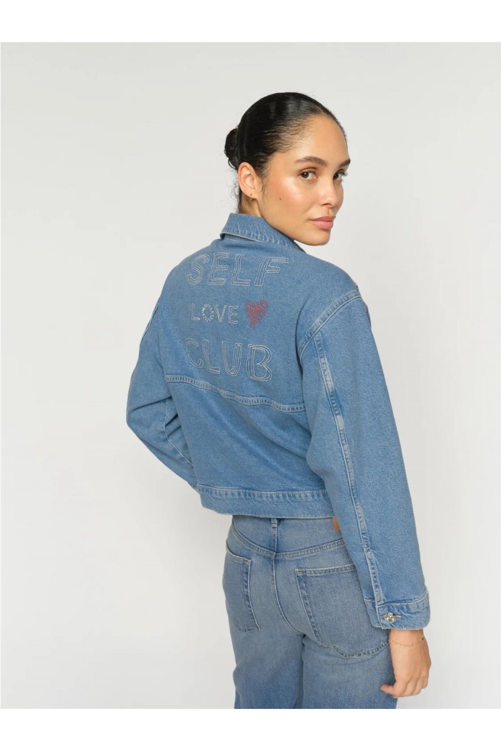 Cazadora vaquera de mujer MMMavi Jentra MOS MOSH bordado letras corazón azul claro 178640