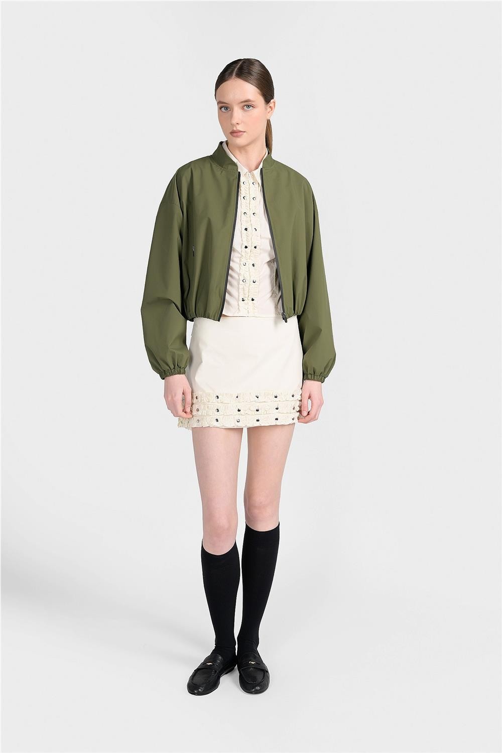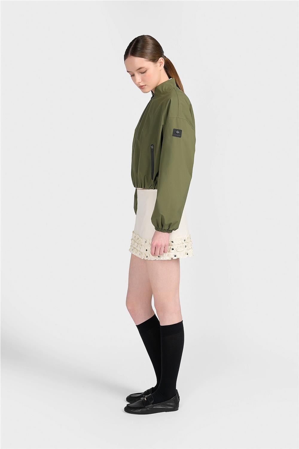 Esta cazadora, confeccionada en poliéster de alto rendimiento, destaca por su silueta corta y un diseño contemporáneo. Gracias a sus propiedades transpirables e hidrófugas, ofrece protección y funcionalidad frente al clima variable. Su ligereza y versatilidad la convierten en la prenda de abrigo perfecta para completar looks casuales o deportivos con un toque sofisticado, garantizando máximo confort en el día a día. Composición: 100% Poliéster.