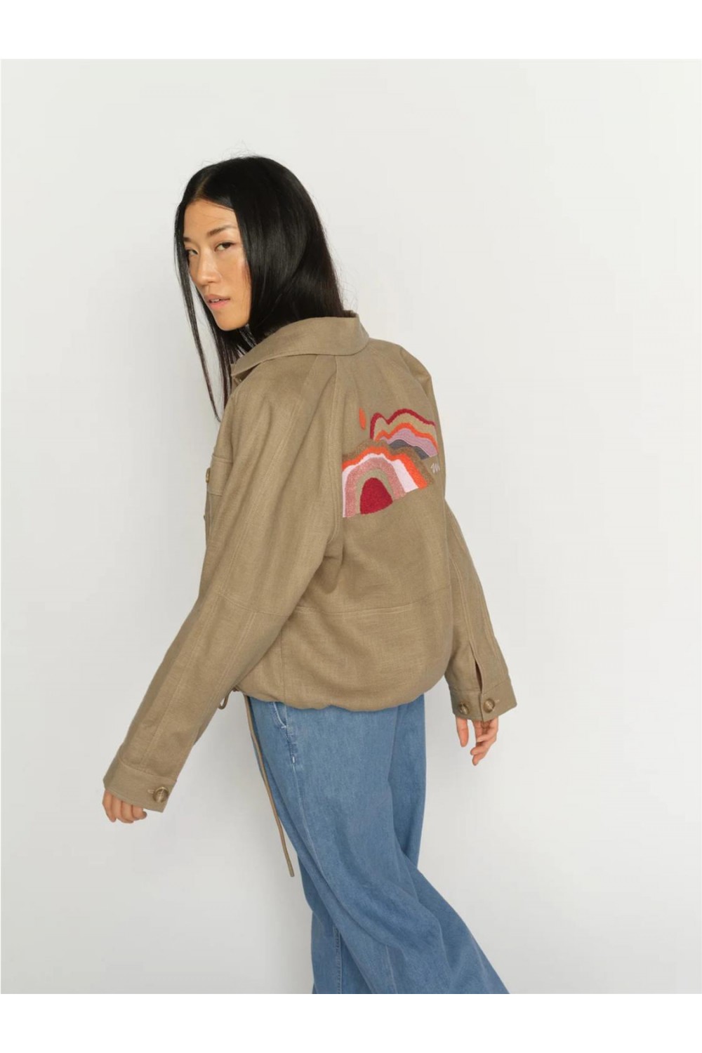 Cazadora de mujer MMGinah Ramie Mos Mosh precioso bordado artístico roble petrificado 177000