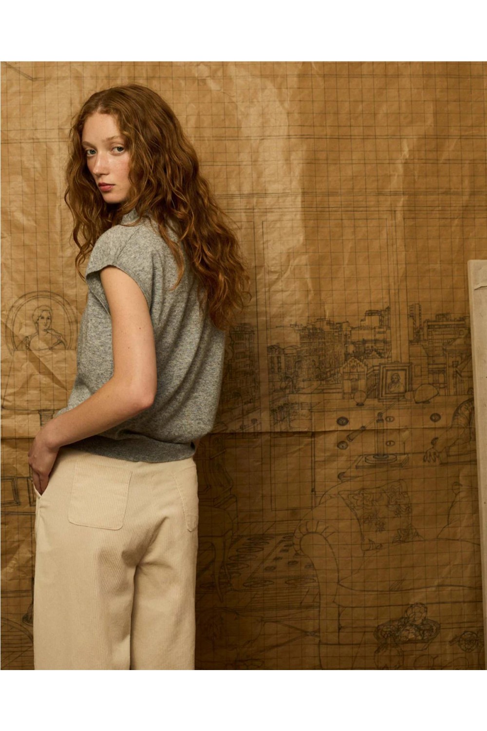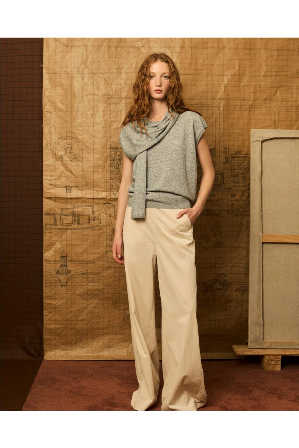 Chaleco de mujer Top de punto Is Coming incorpora bufanda cuello gris 716.TOP.7161