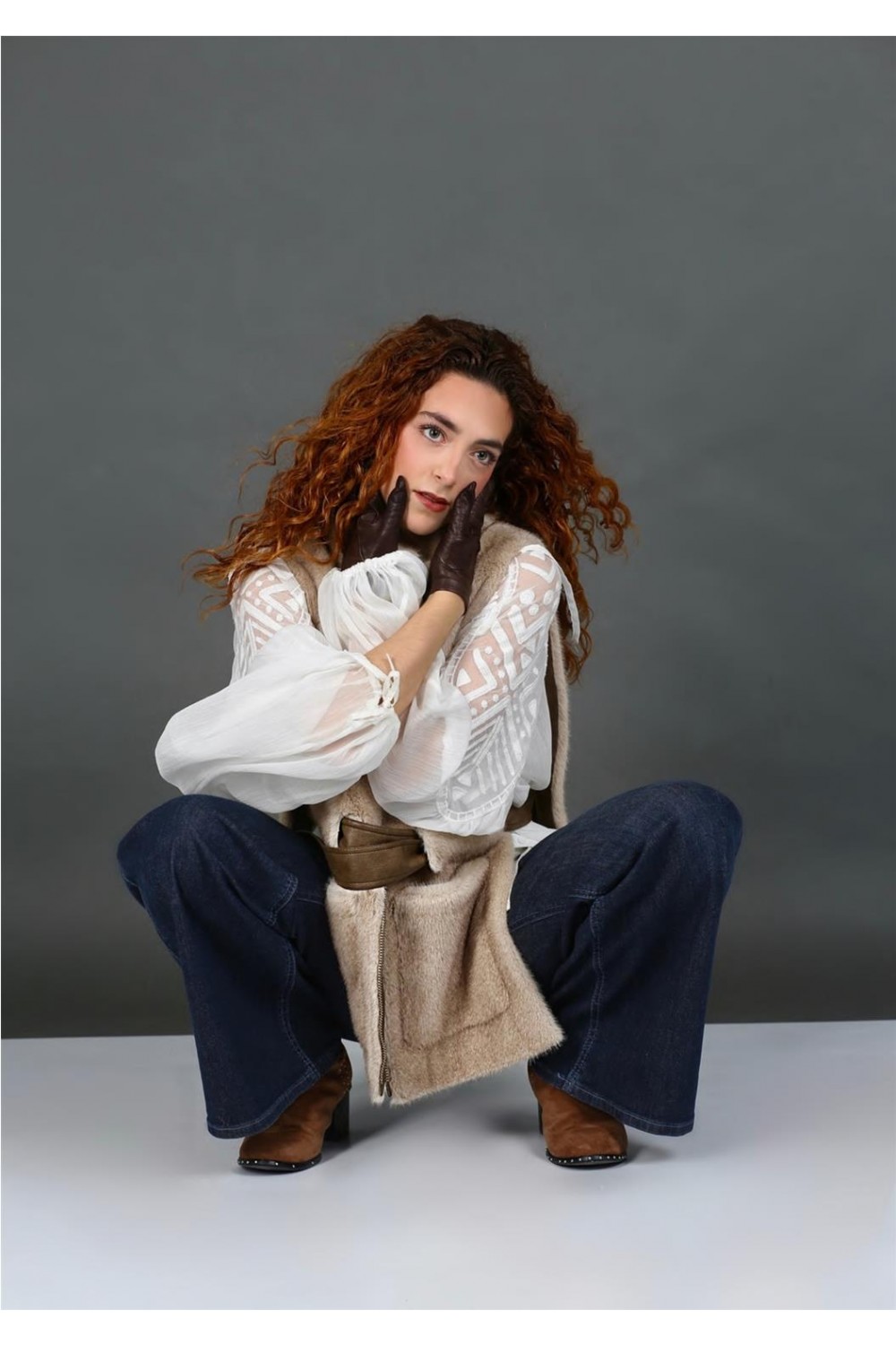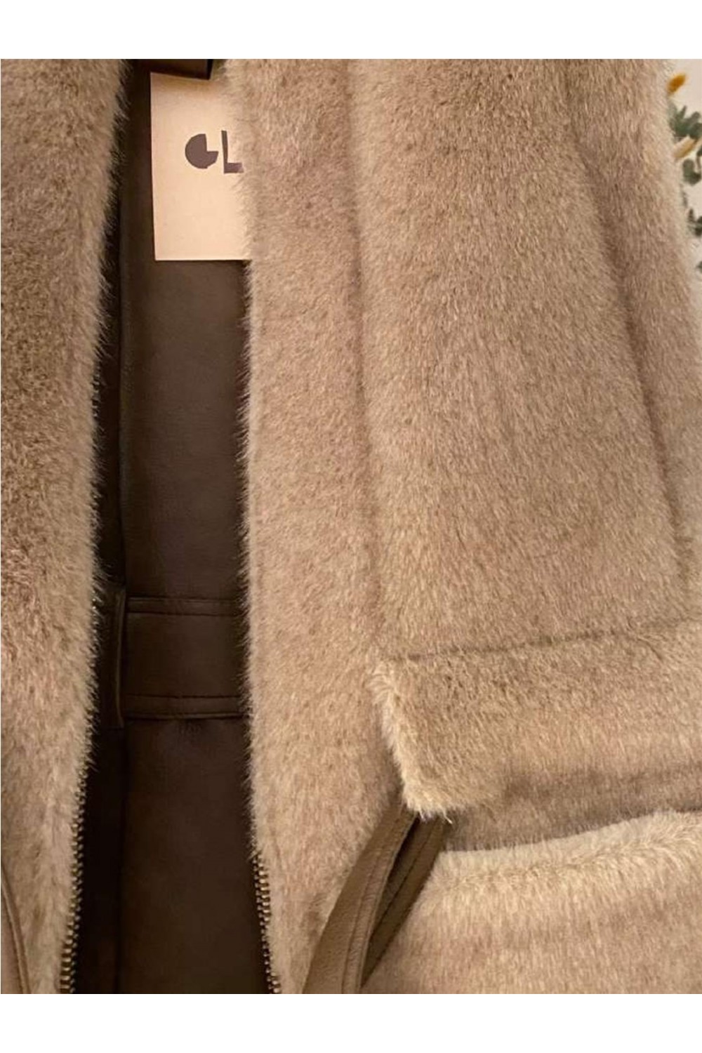 Chaleco de mujer de pelo Glox cinturón cuello alto beige SG404