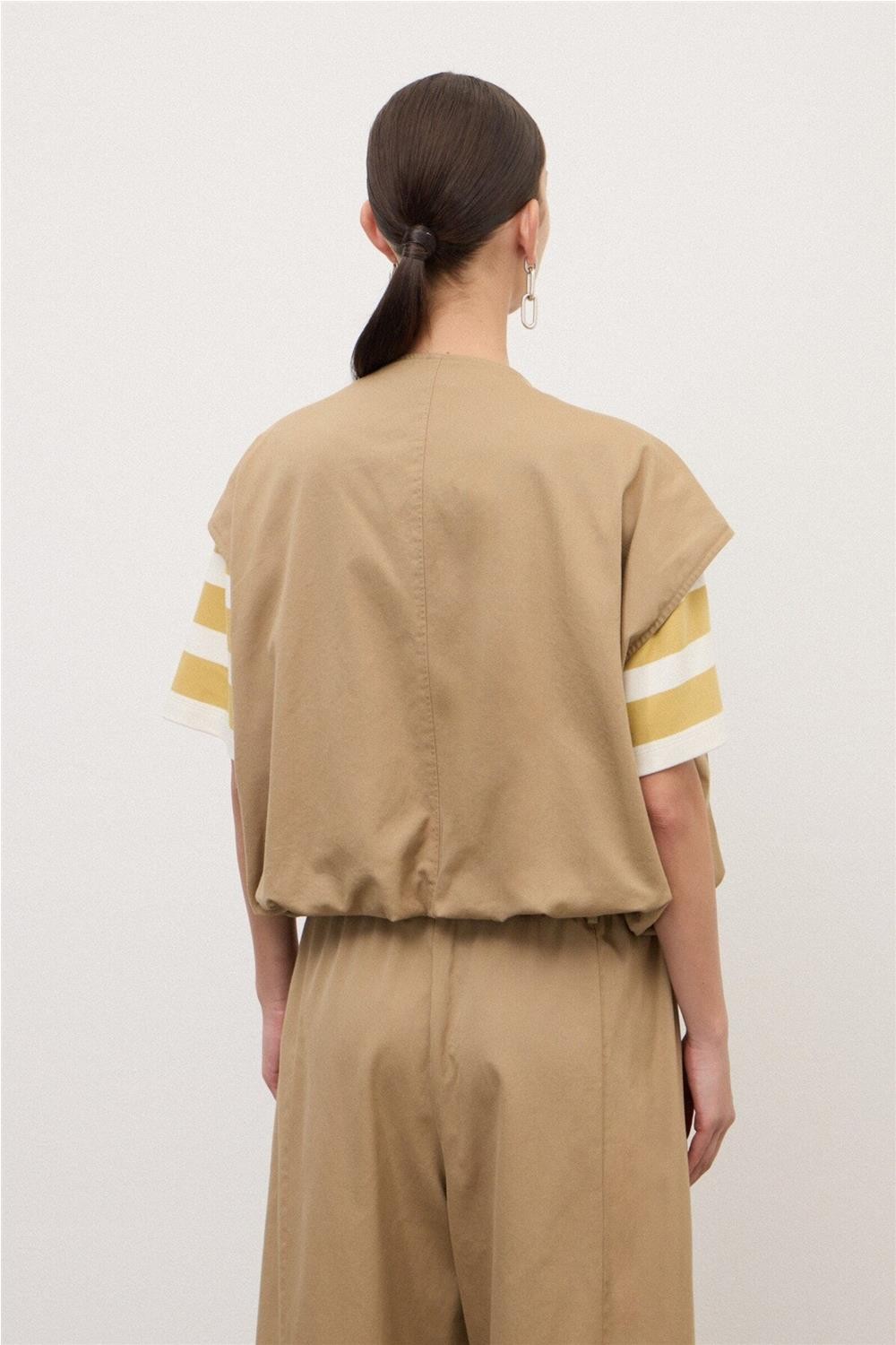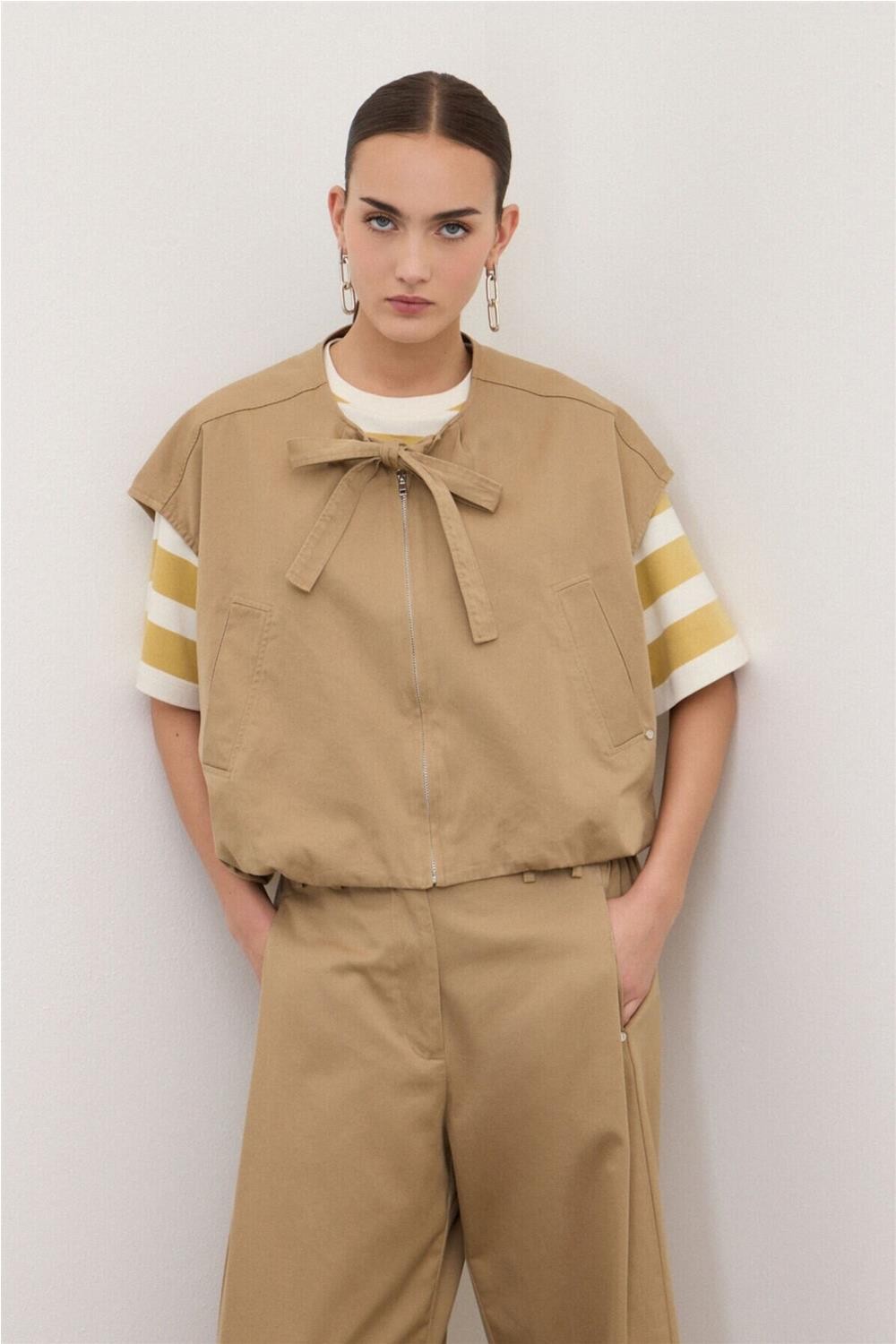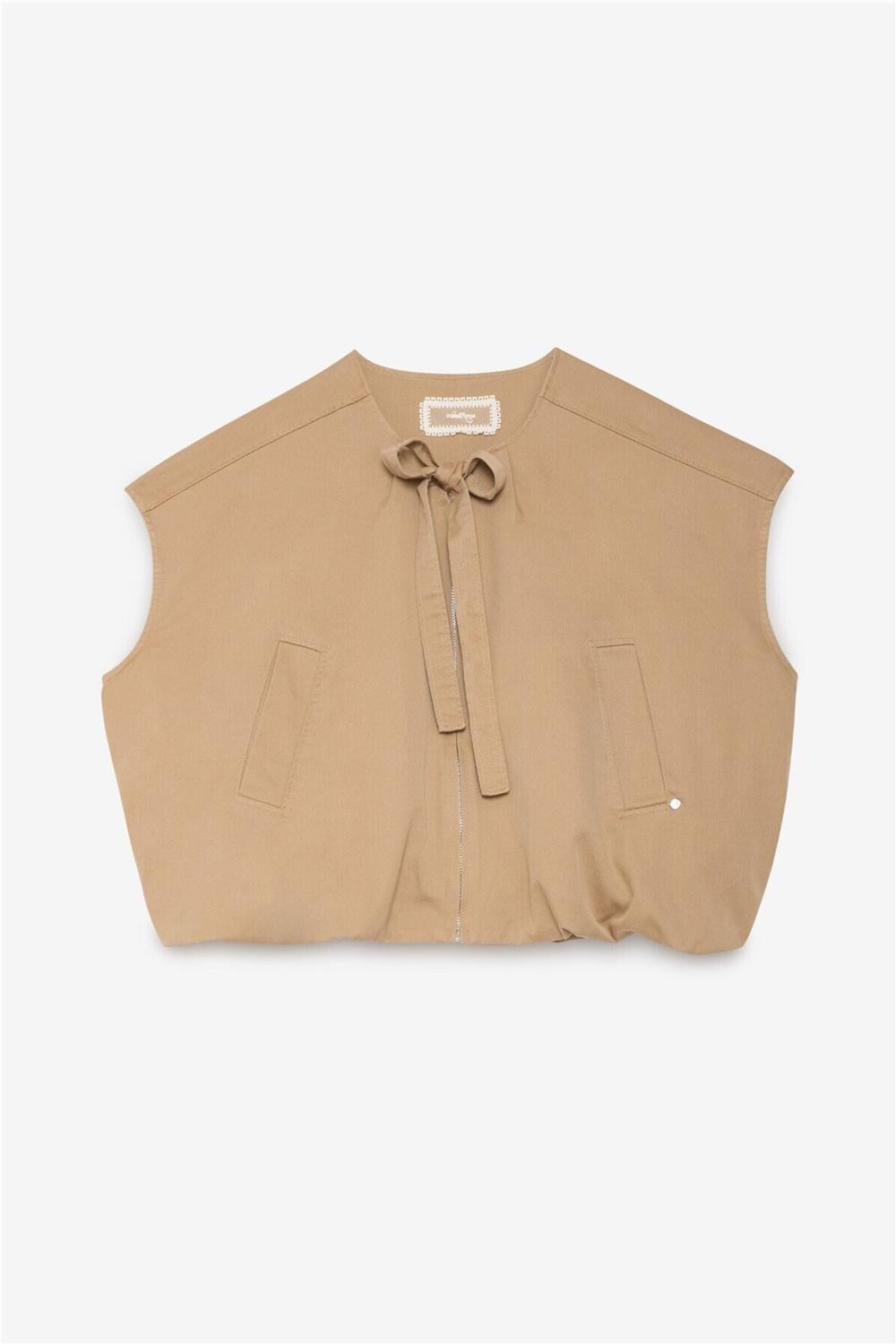Chaleco de mujer algodón Ottod Ame estilo globo lazo camel DG6195