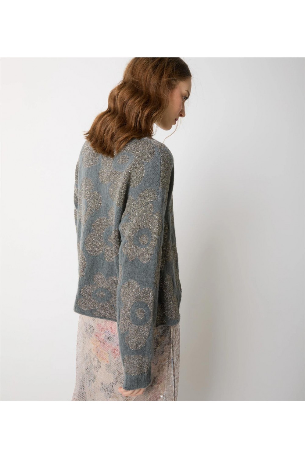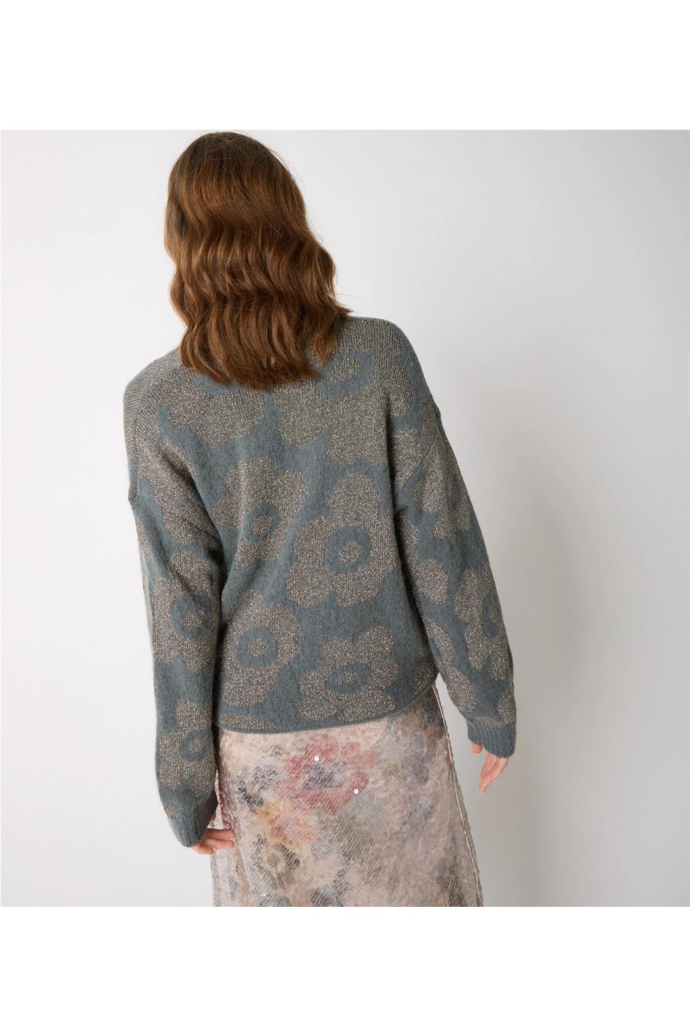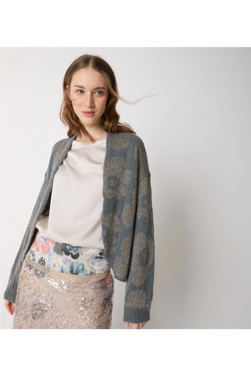 Chaqueta de punto de mujer floral Alessia Santi estampado floral jacquard gris/oro SD53047