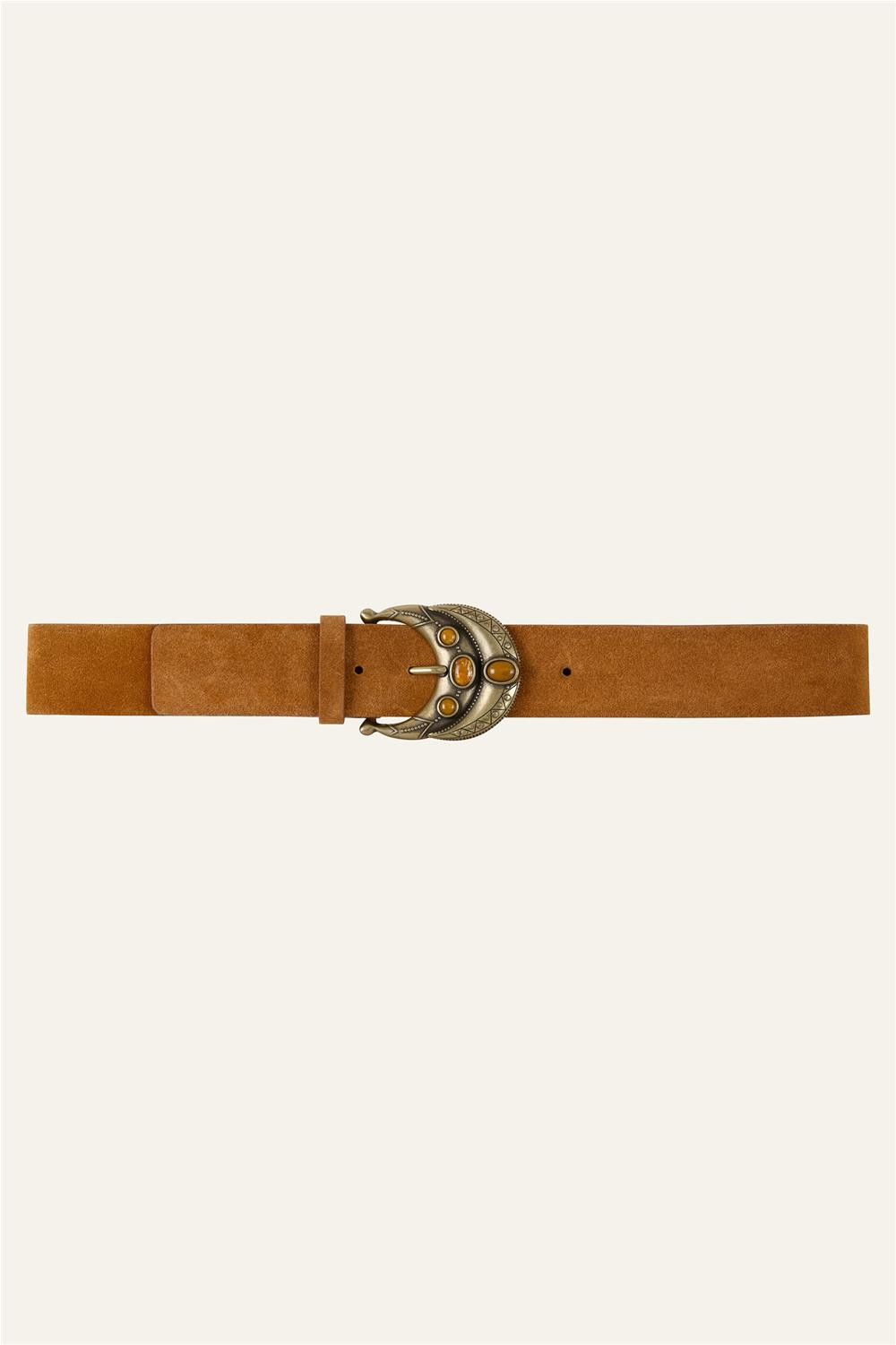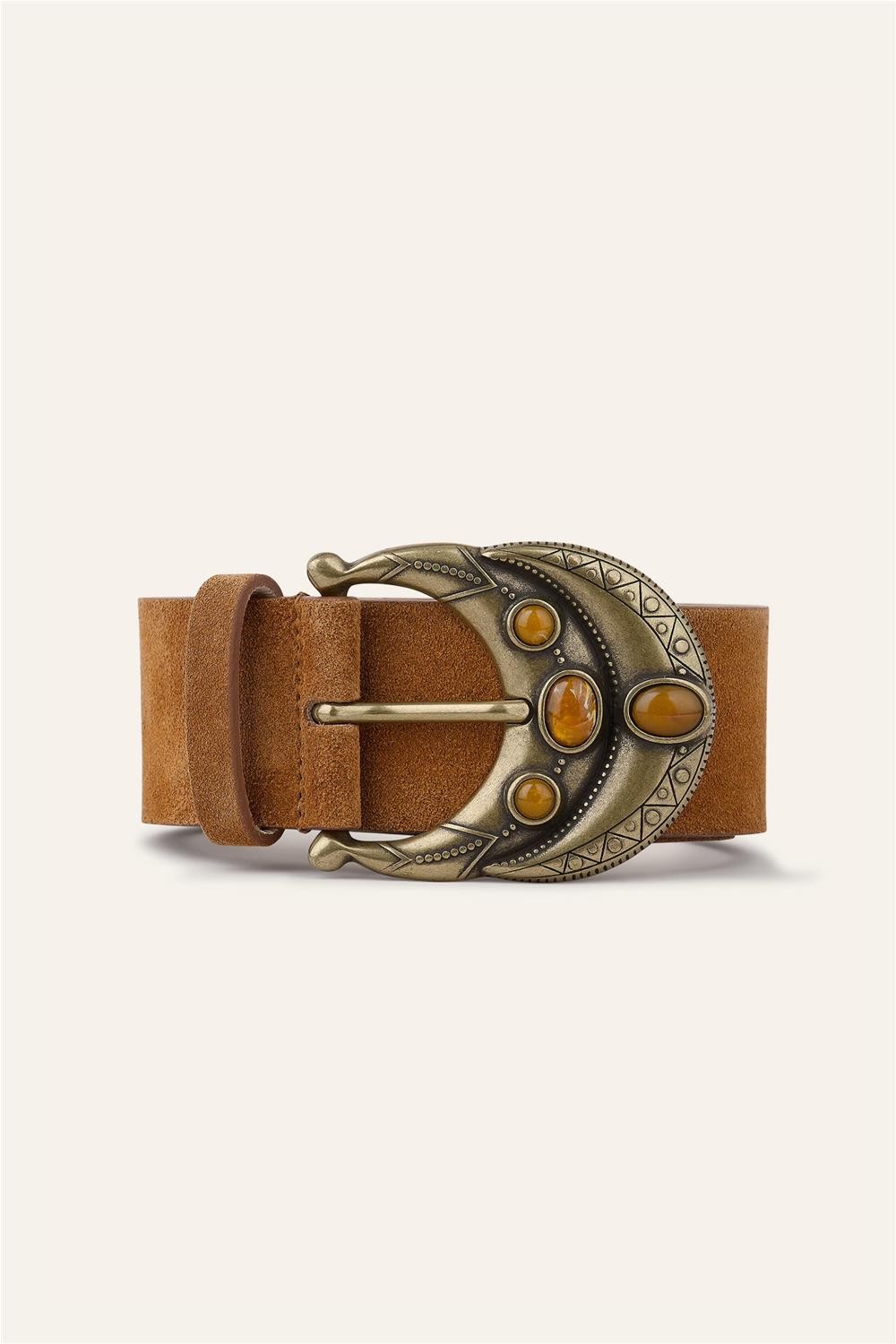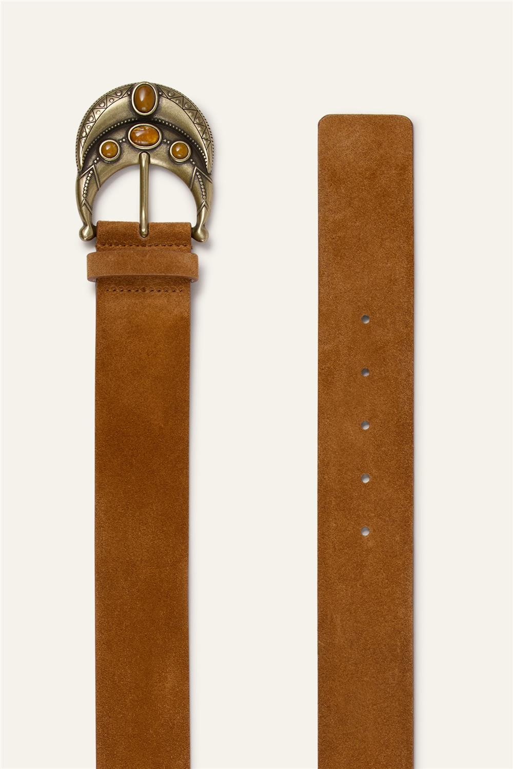 Cinturón de mujer BOLBI bash ante incrustaciones piedra coñac negro 2H25BOLB
