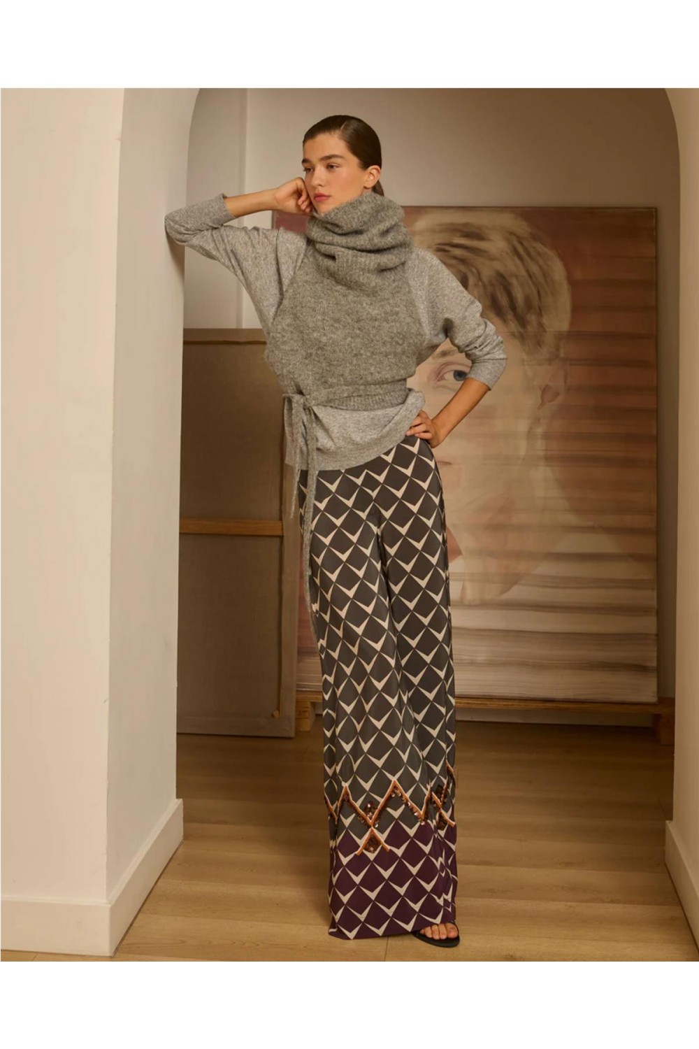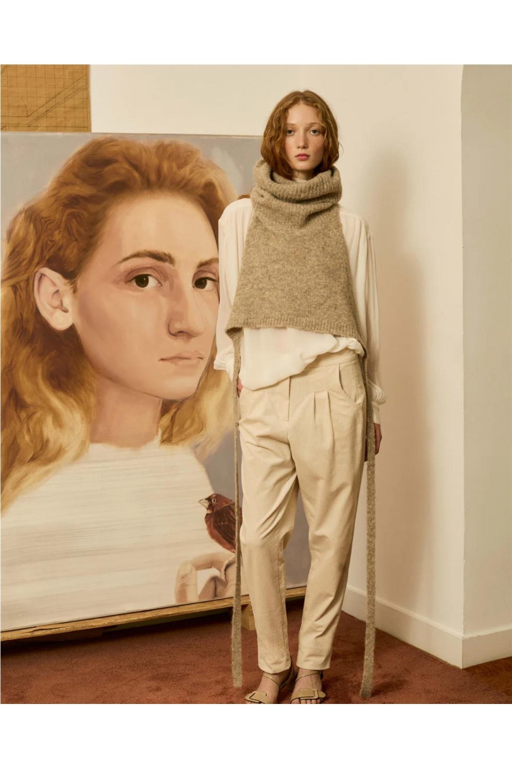 Cuello de lana de mujer efecto jersey Is Coming espalda descubierta cinturón amarillo beige gris 736.CUE.7364