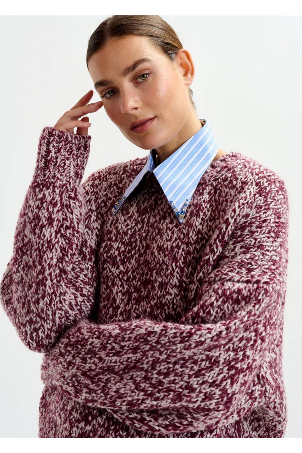 Cuello de mujer IPLAIN Essentiel brillantes patrón rayas azul celeste IPLAIN