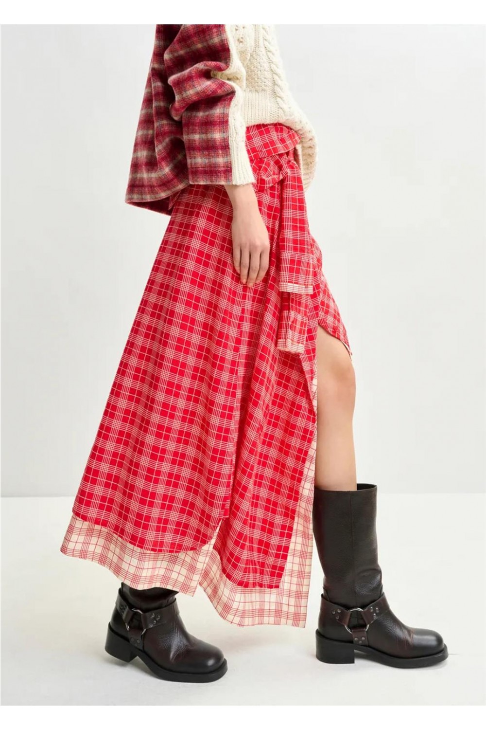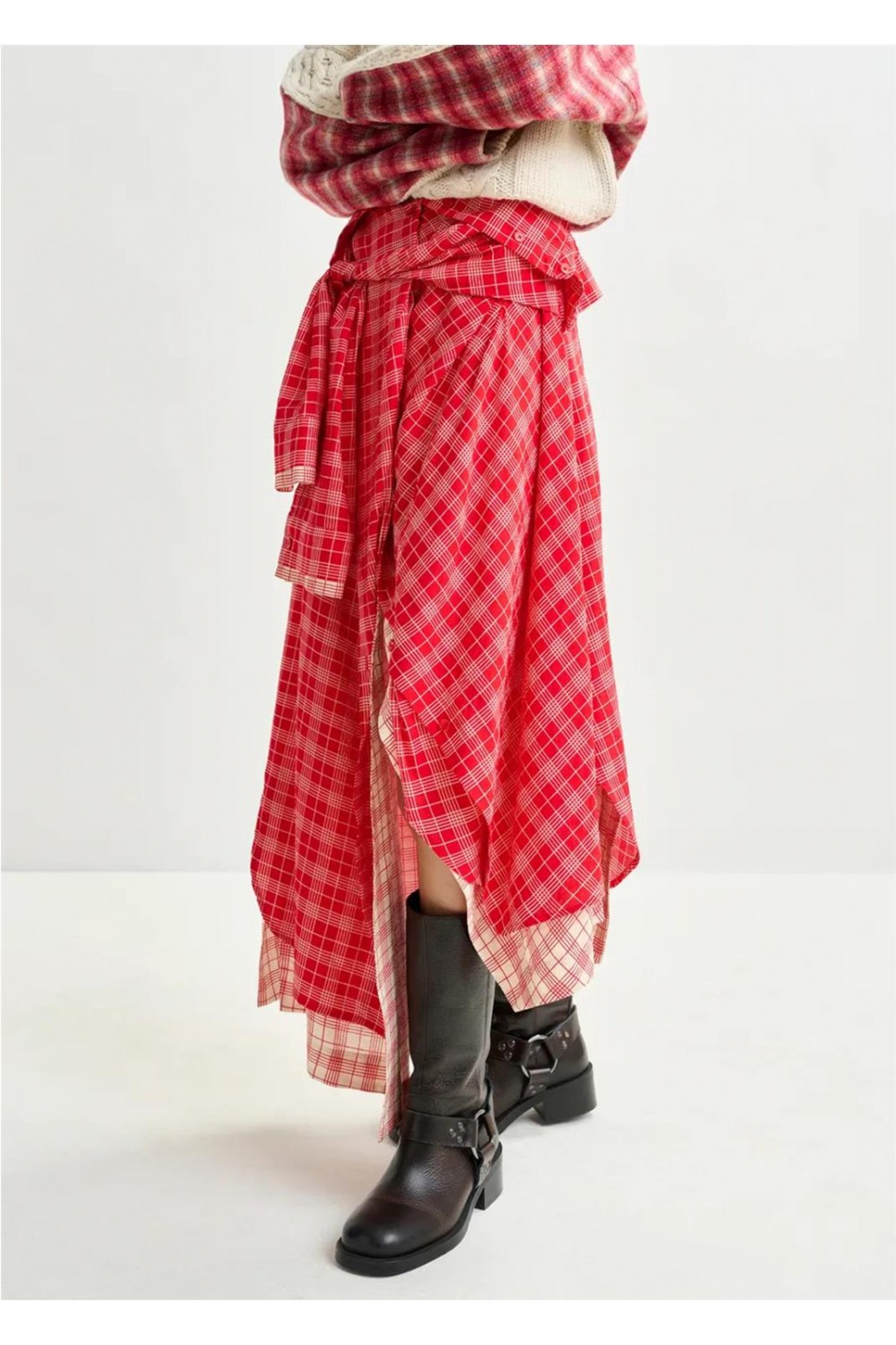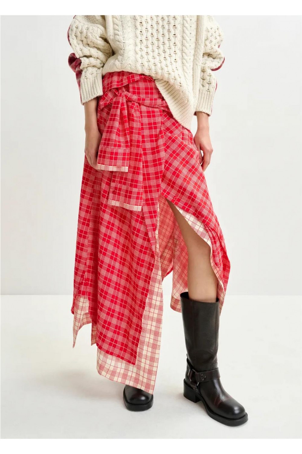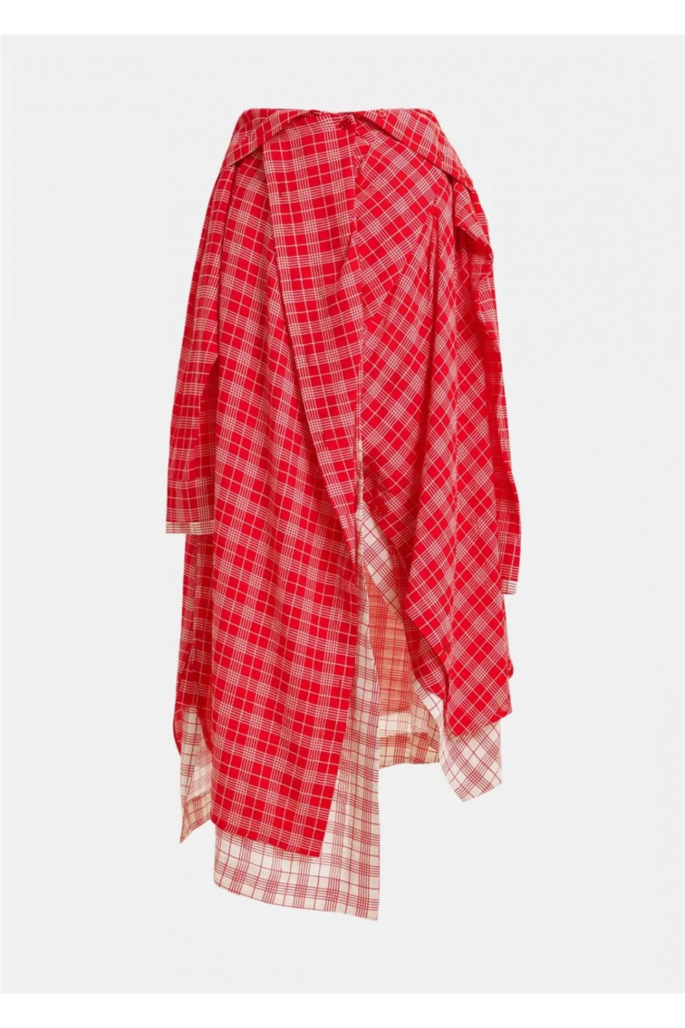Falda asimétrica de mujer IXCHEL Essentiel deconstruido cuadros fluido azul marino rojo IXCHEL