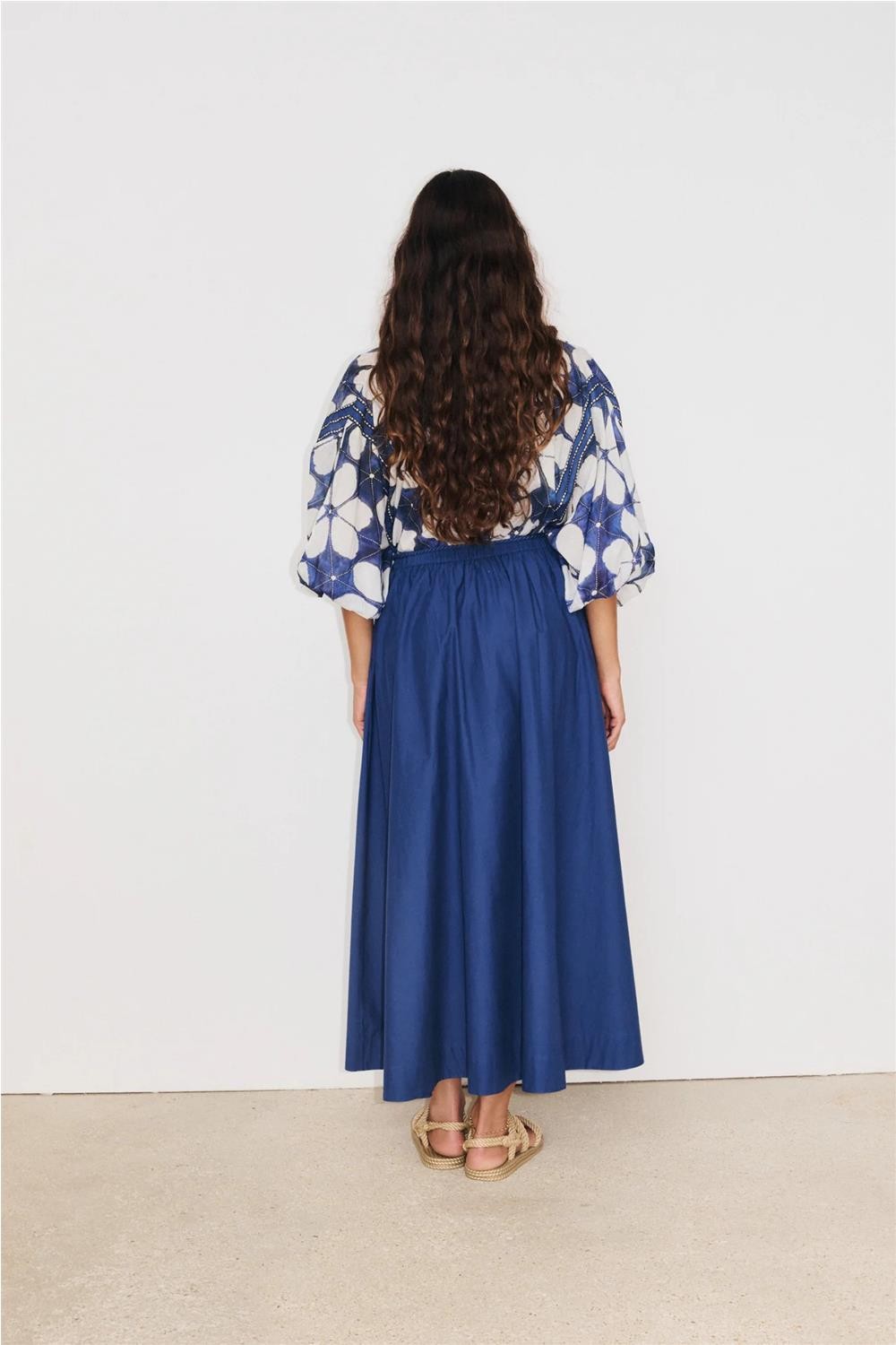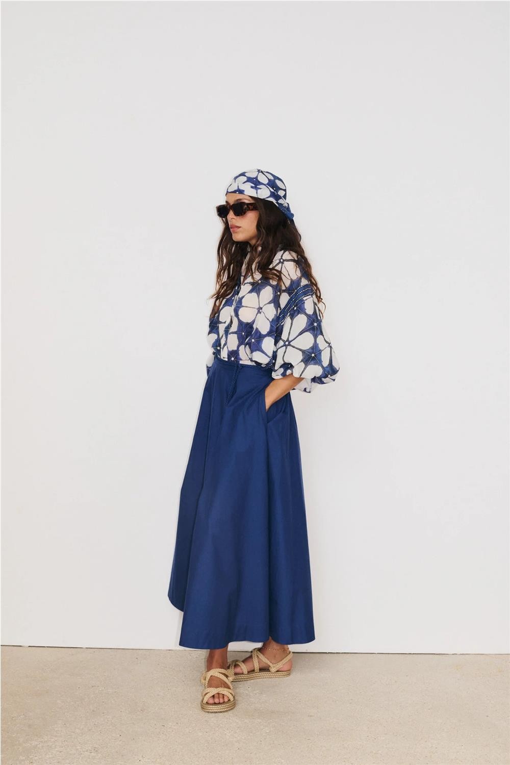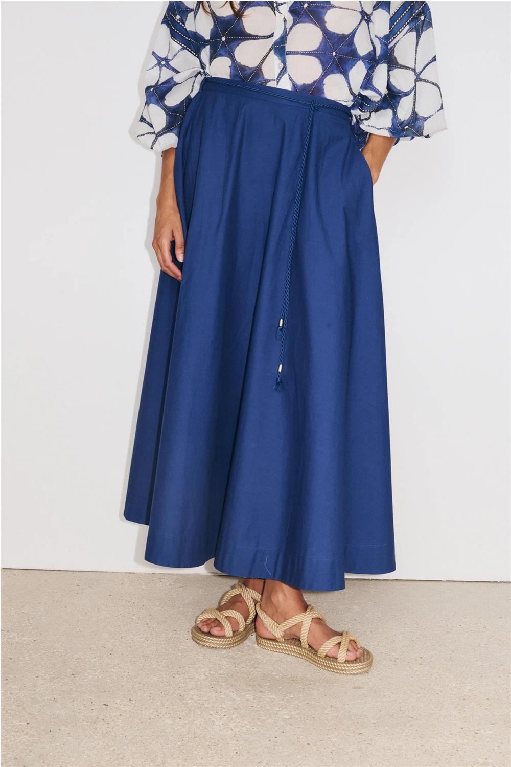Falda larga de mujer OCTAVIA Stella Forest cinturón trenzado artesanal indigo marrón E26JU006