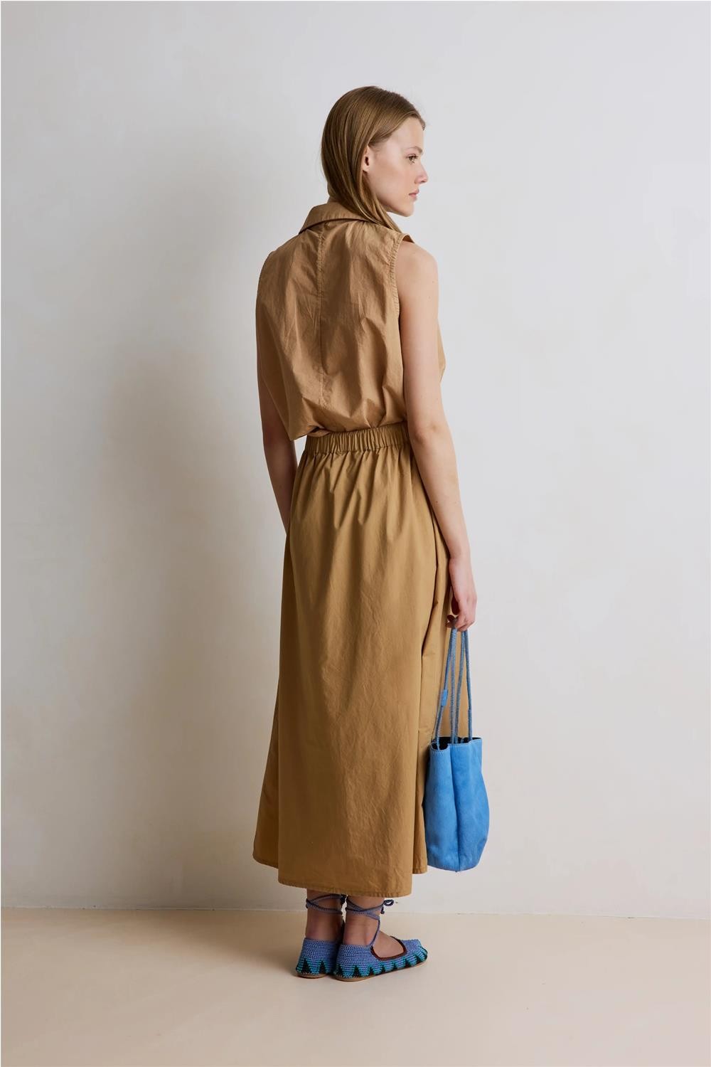 Falda larga de mujer Dolly Hod Paris cintura elástica cordones avellana DOLLY