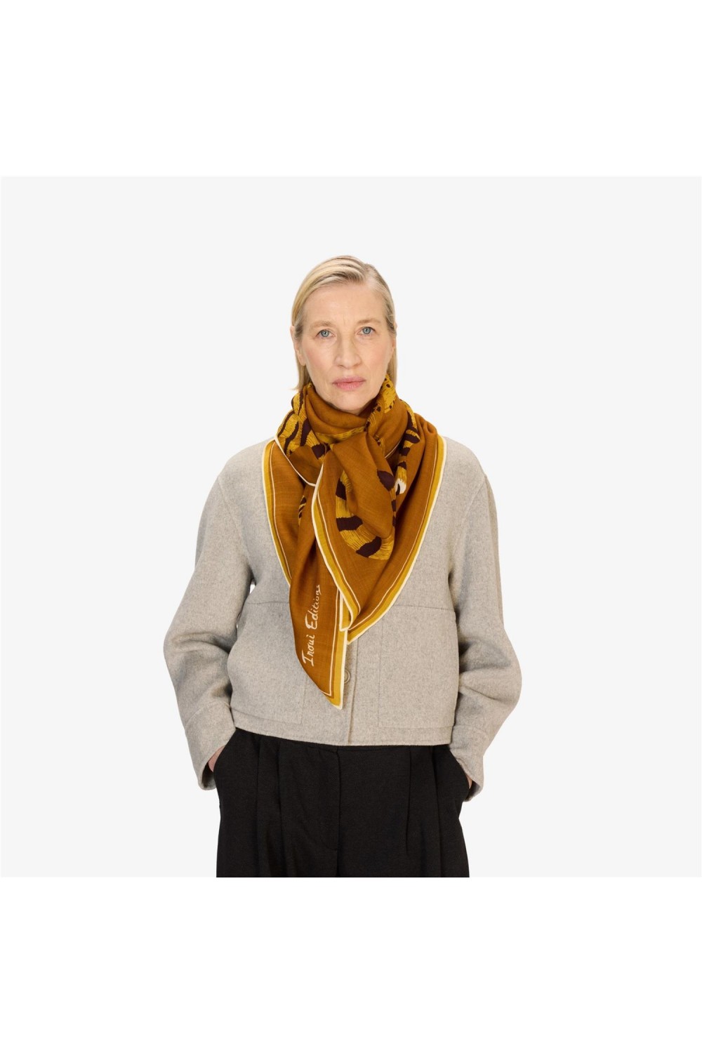 Pañuelo de mujer Jorgen Inoui Editions ligera lana sedosa marrón dorado CA222JO44
