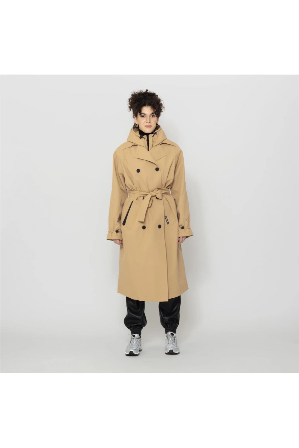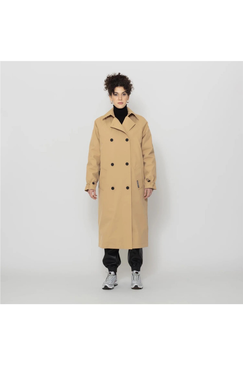 Gabardina larga de mujer GALE Gofranck cruzada repelenta al agua camel GALE