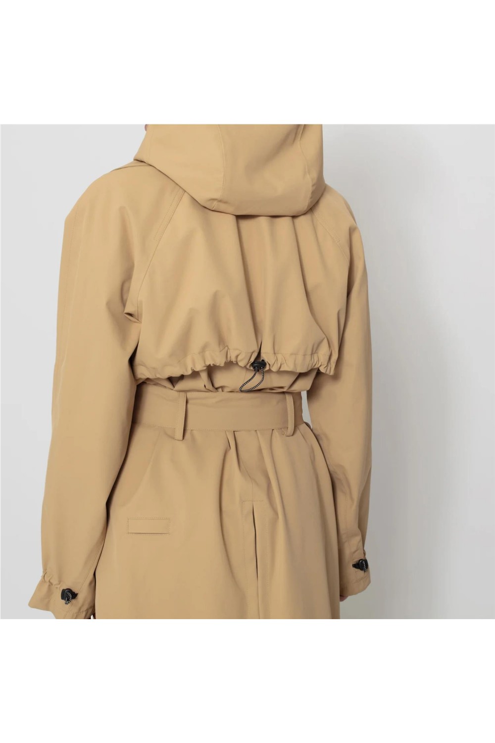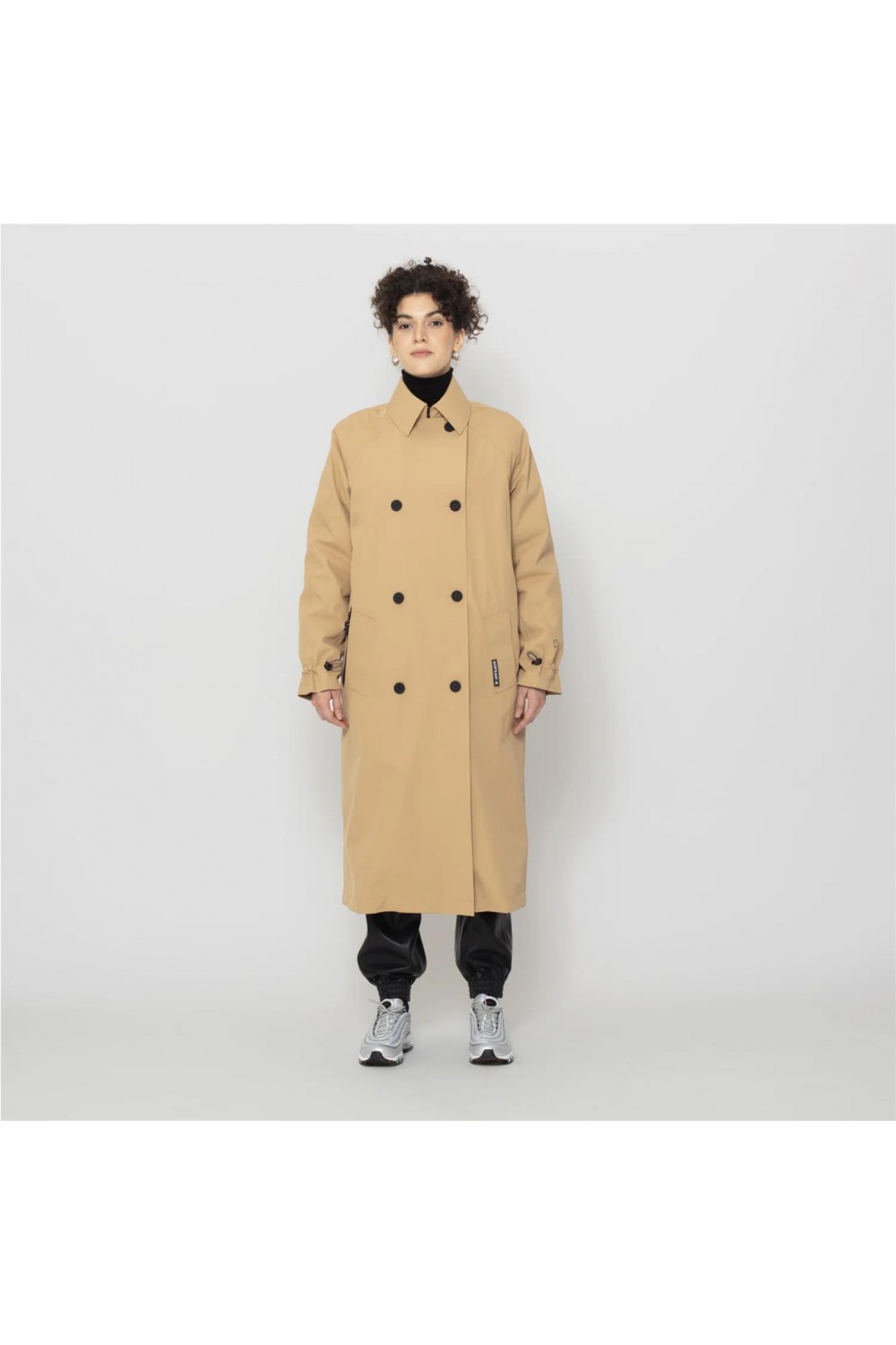 Gabardina larga cruzada y con doble abotonadura. Acabado DWR BIONIC: componente altamente repelente al agua. Composición: Material de alto rendimiento Dense Micro Twill.