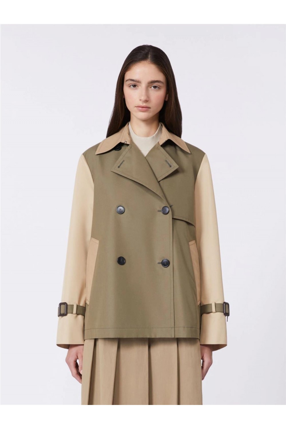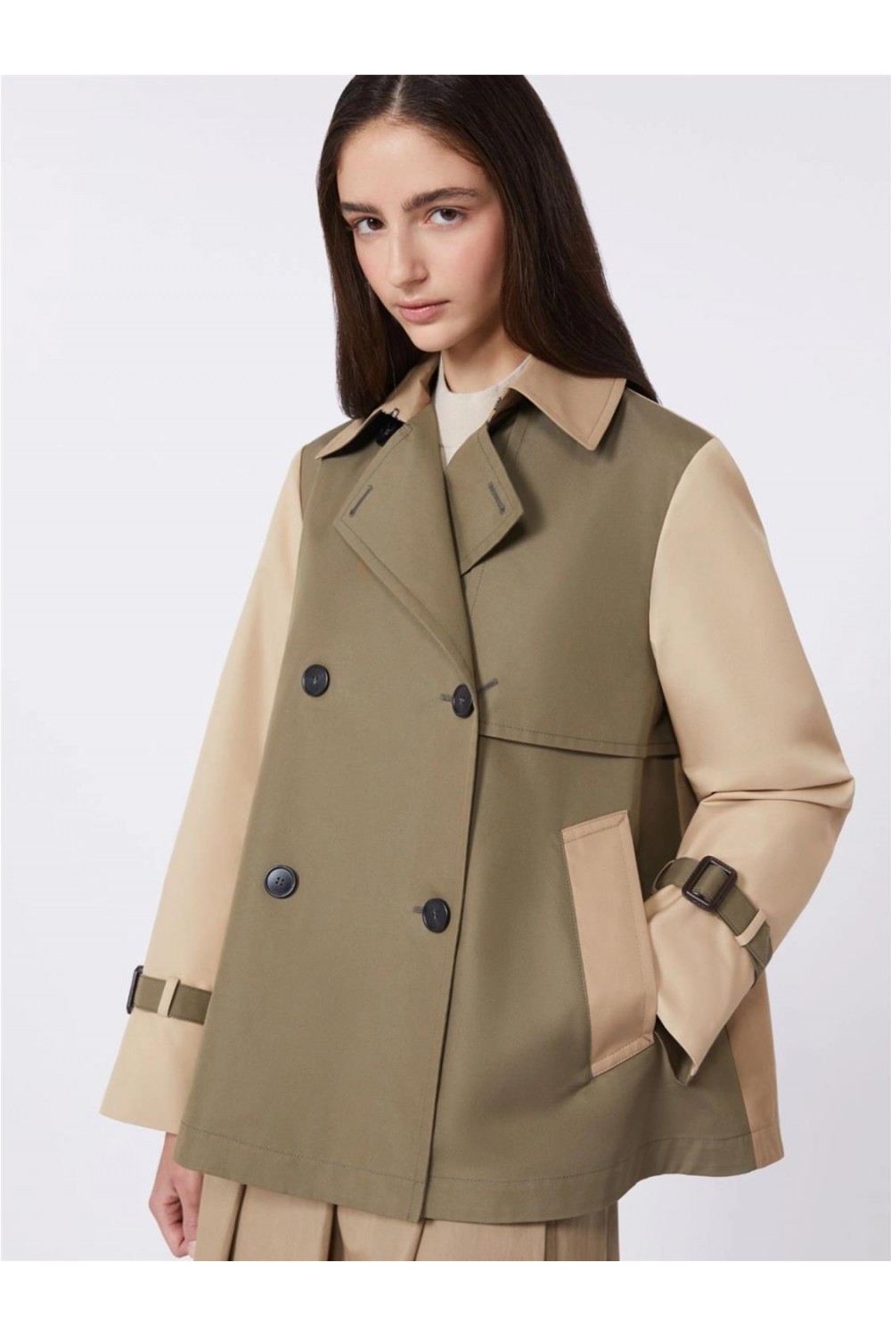 Gabardina corta de mujer WKDBIGLIA Max Mara bavolette cropped cruzado fango WKDBIGLIA