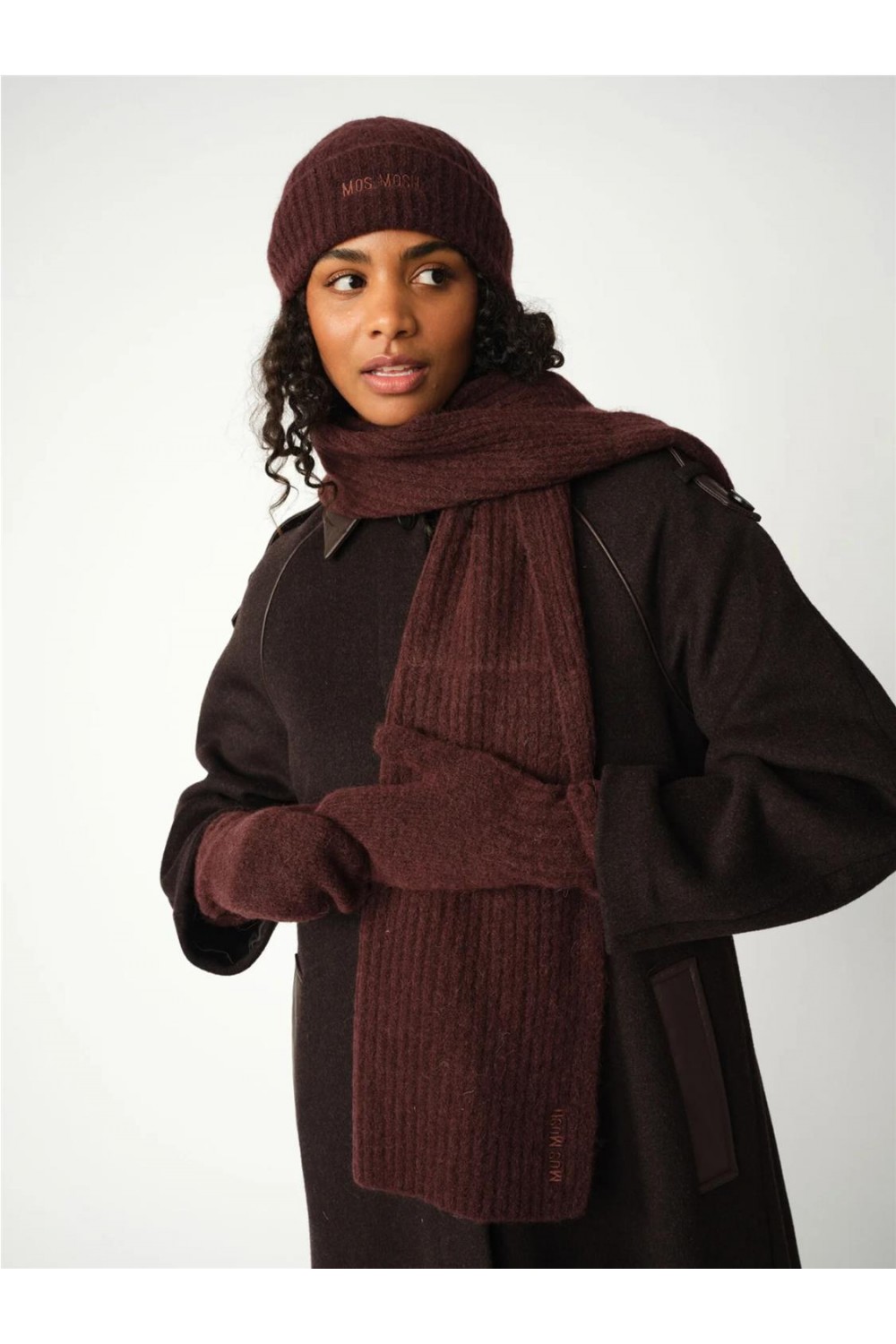 Guantes mitones de punto de mujer MMLora Mos Mosh lana canalé manoplas granate 158160