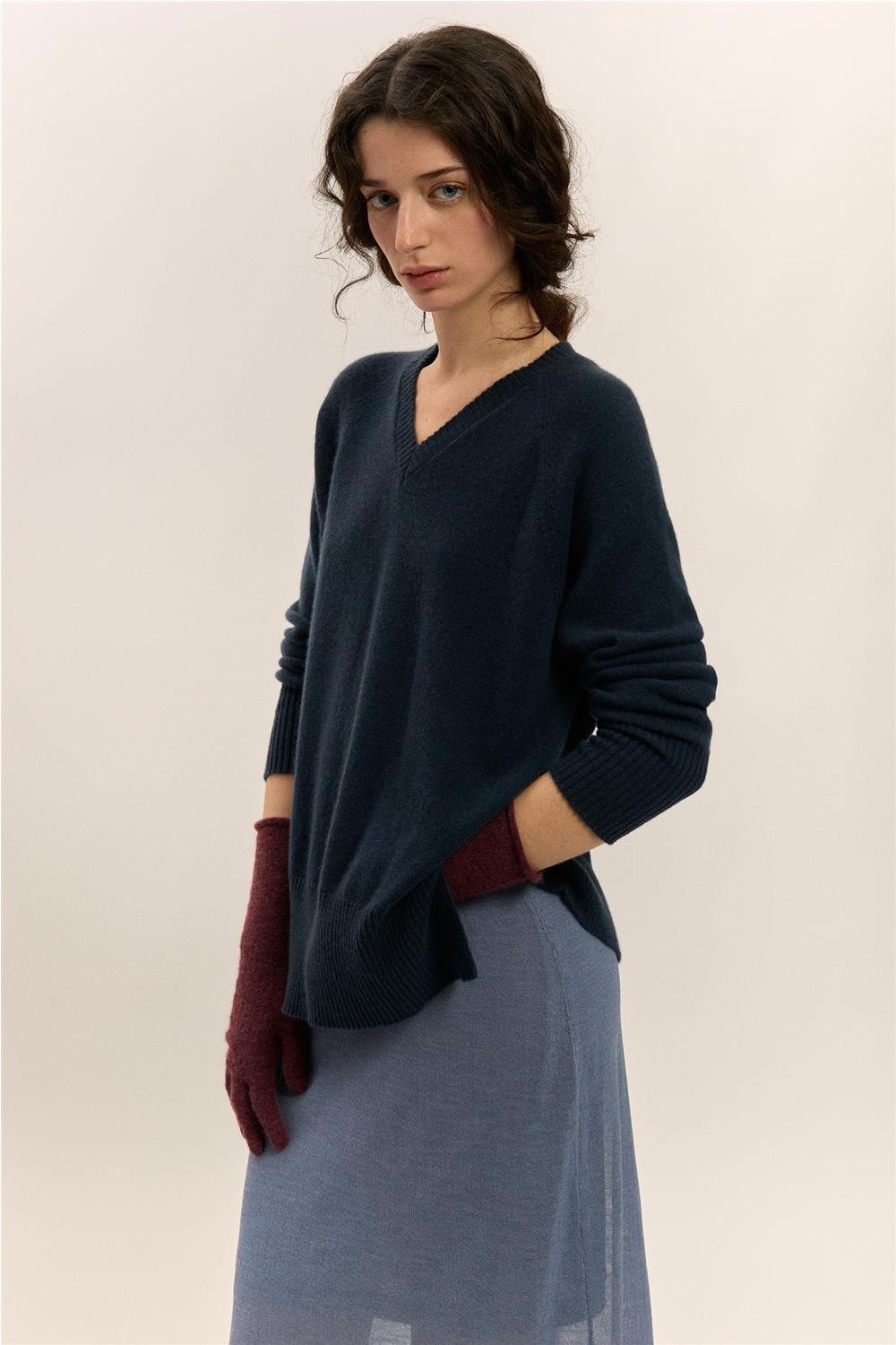 Guantes largos de punto en talla única, confeccionados con una hilatura que contiene alpaca para mayor suavidad y calidez. Estos guantes son de diseño fino y están fabricados sin costuras, lo que garantiza un ajuste cómodo y elegante, ideal para un look sofisticado en los meses fríos. Composición: 53% WP (alpaca Suri), 14% WV (lana virgen), 33% PA (poliamida).