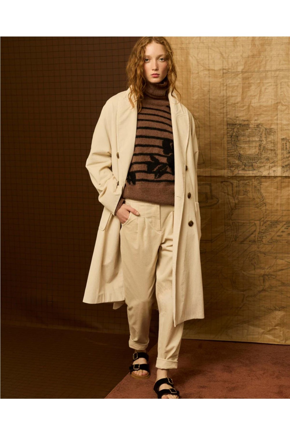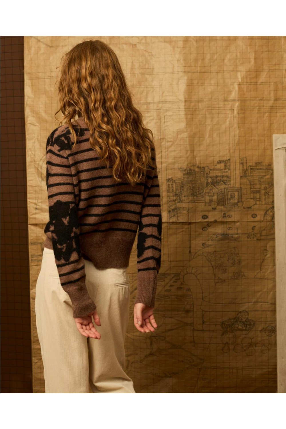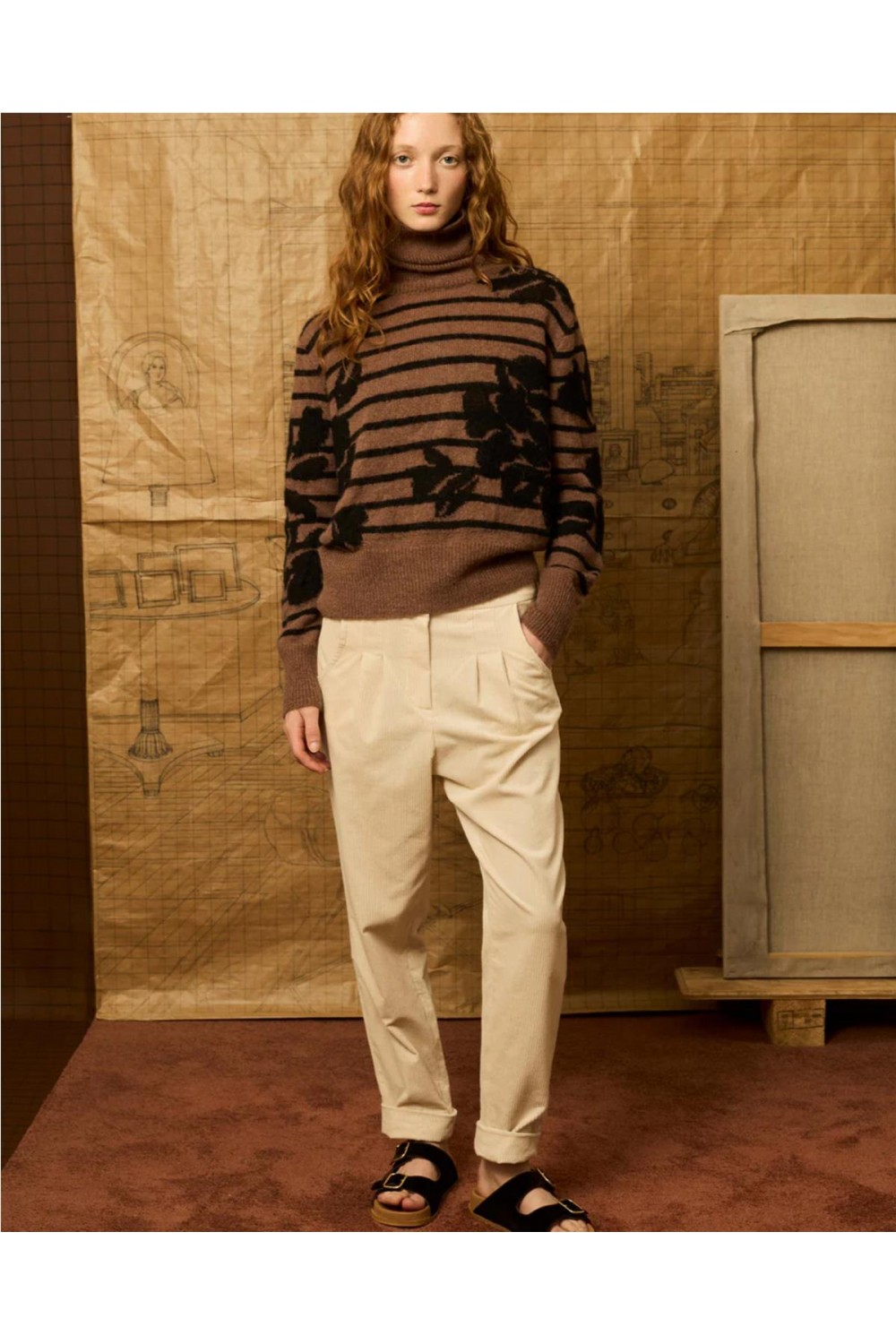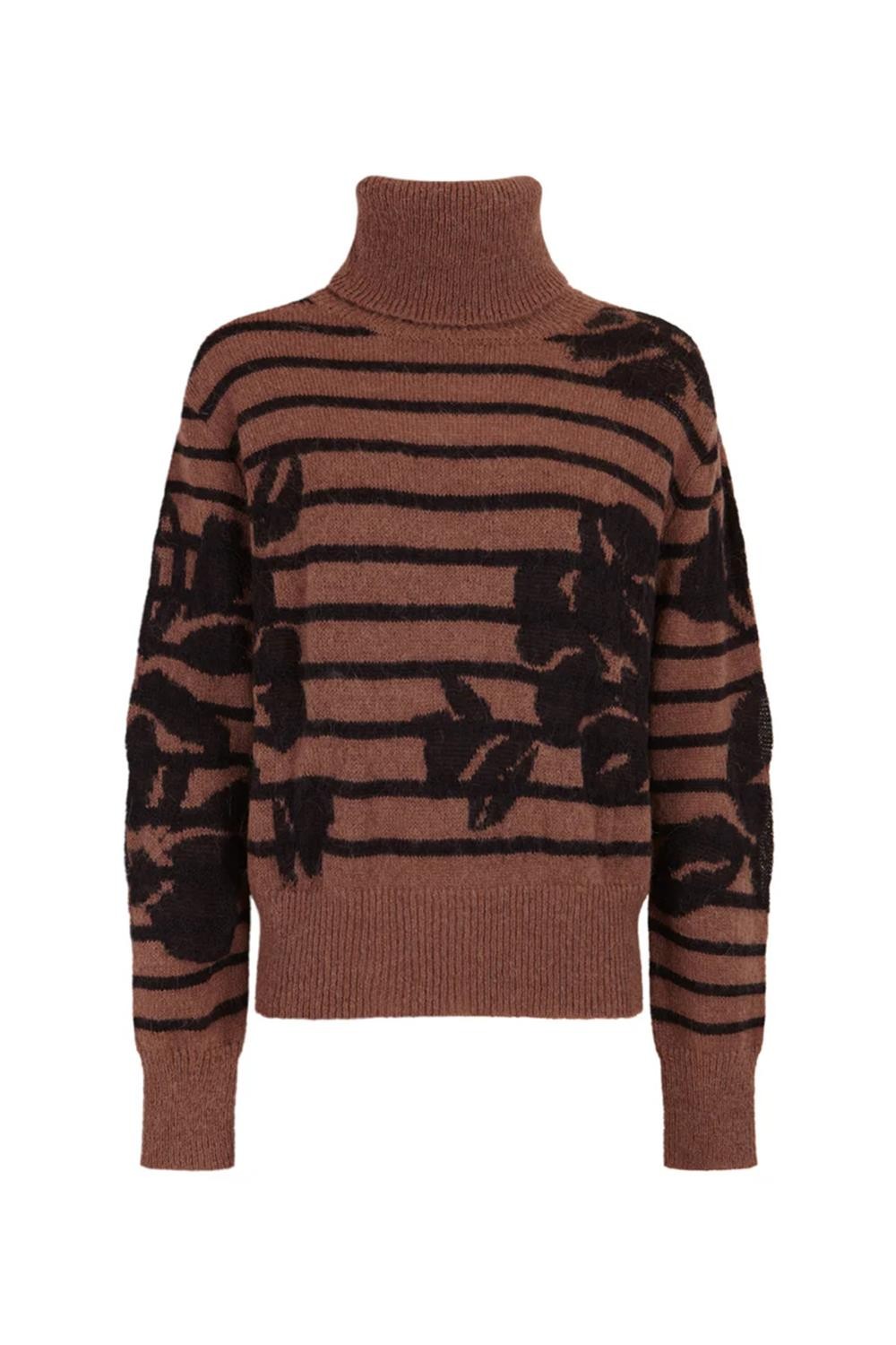 Jersey de punto de mujer flores Is Coming cuello alto jacquard caqui negro 737.JER.7372