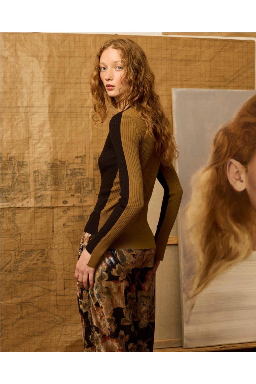 Jersey de punto de mujer bicolor Is Coming escote pico entallado negro/oliva 751.JER.7511