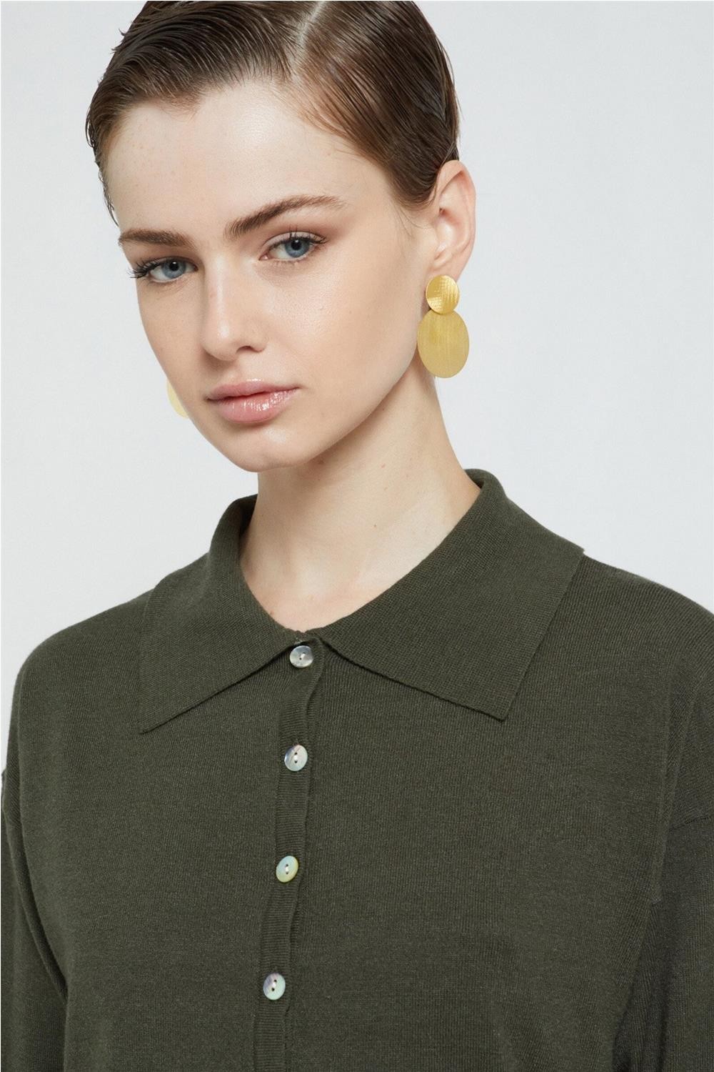 Jersey de punto de mujer viscosa Ottod Ame cuello polo viscosa camel verde militar DK9210
