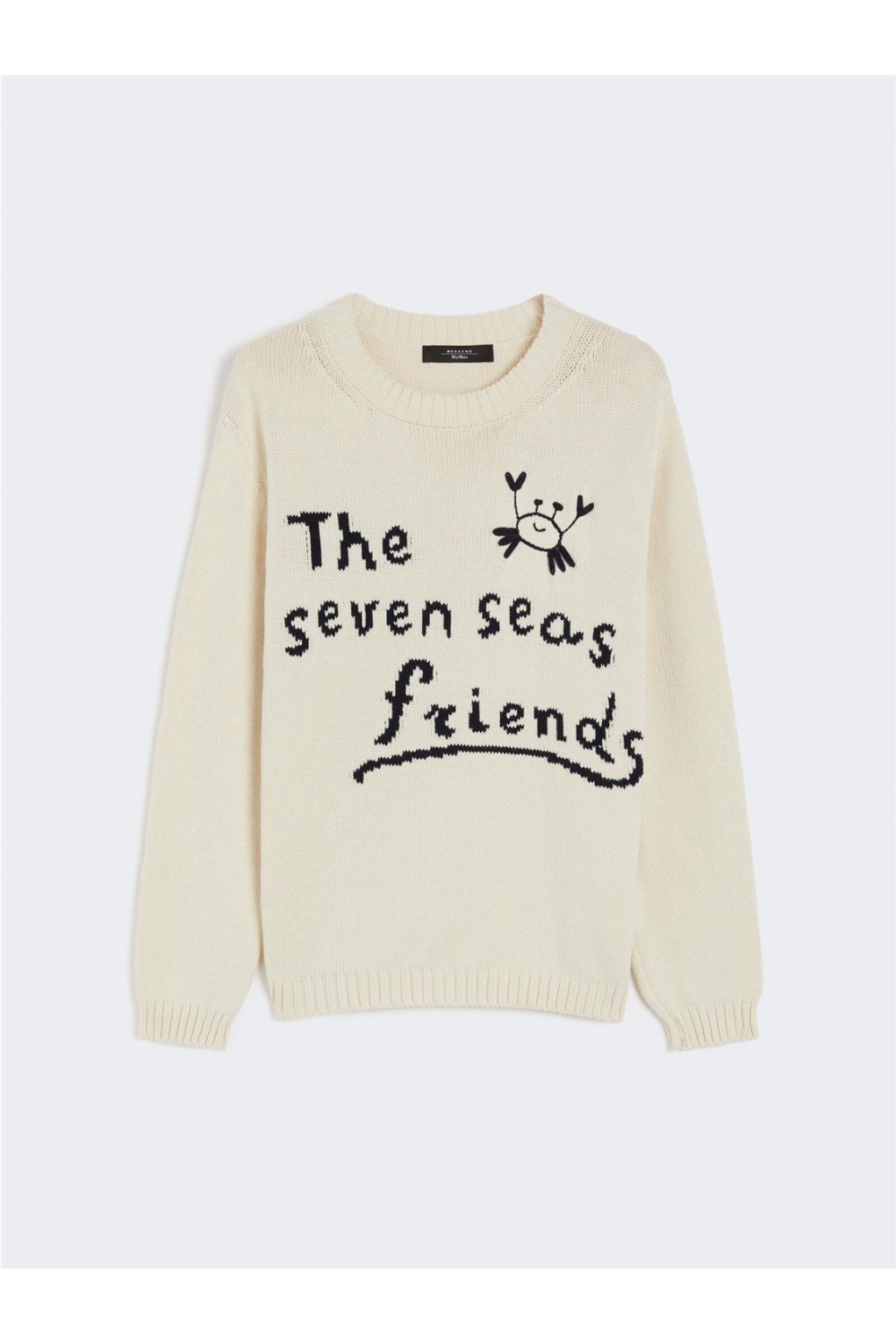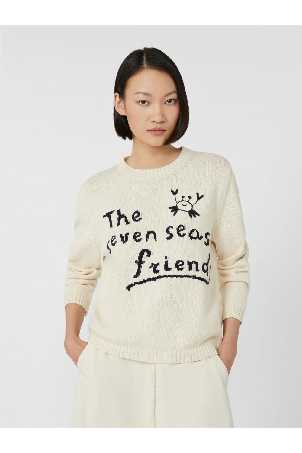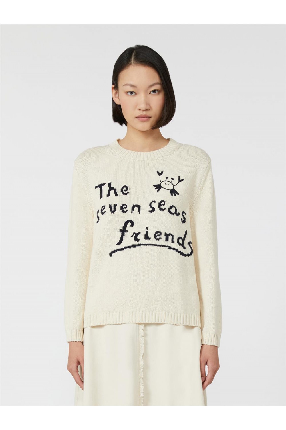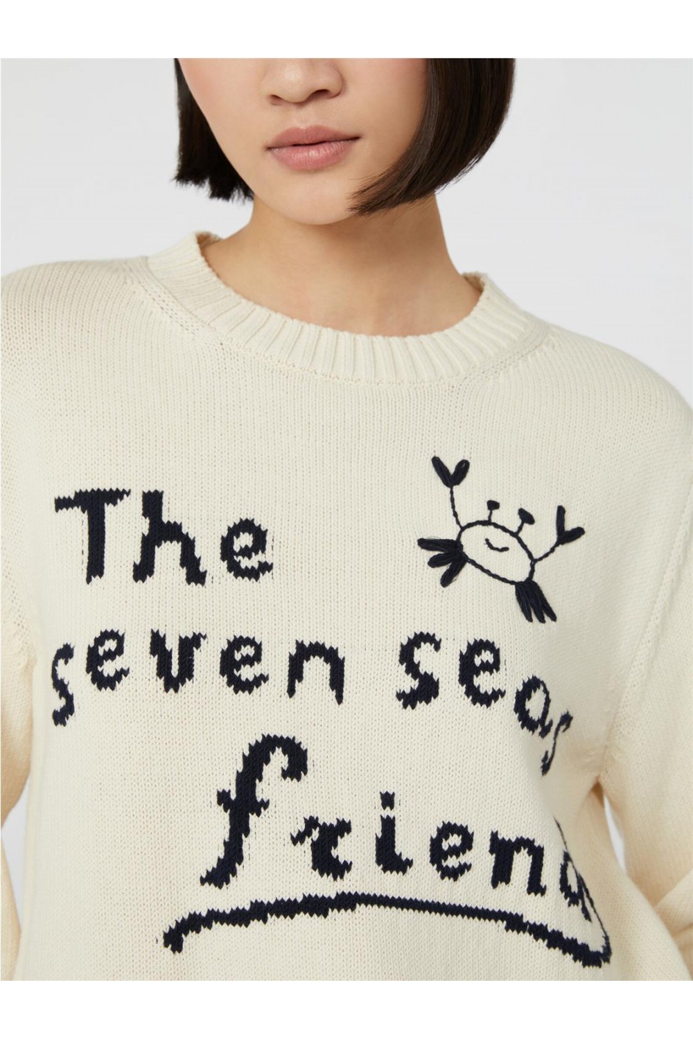 Jersey de punto de mujer Nespola Max Mara cordonnet acanalado gráfico marfil azul marino NESPOLA