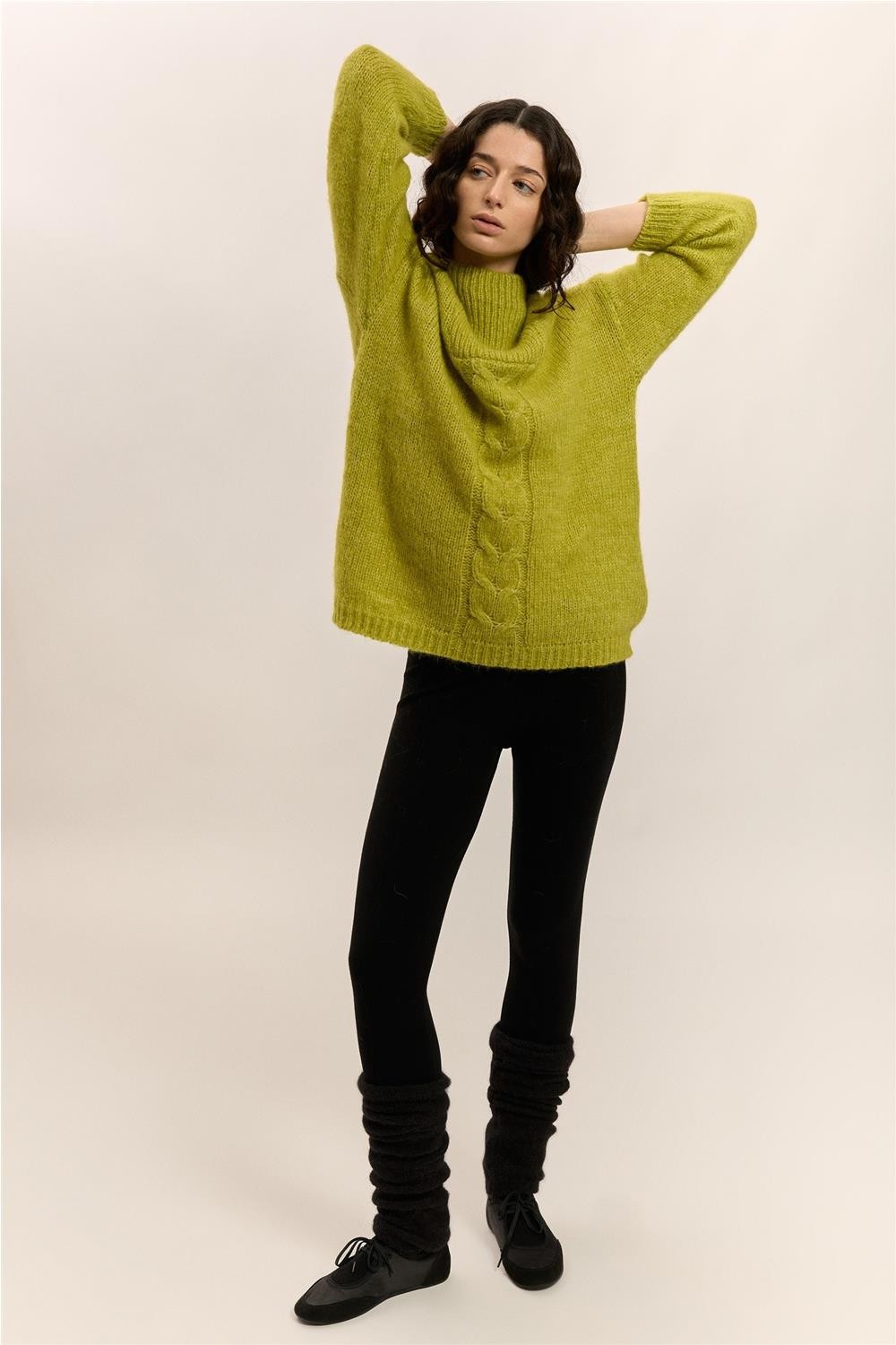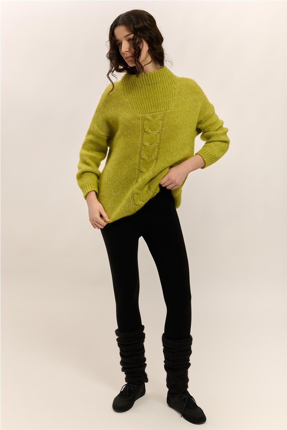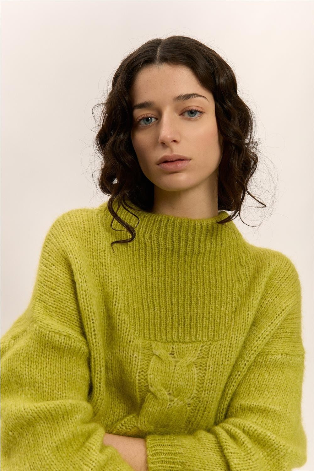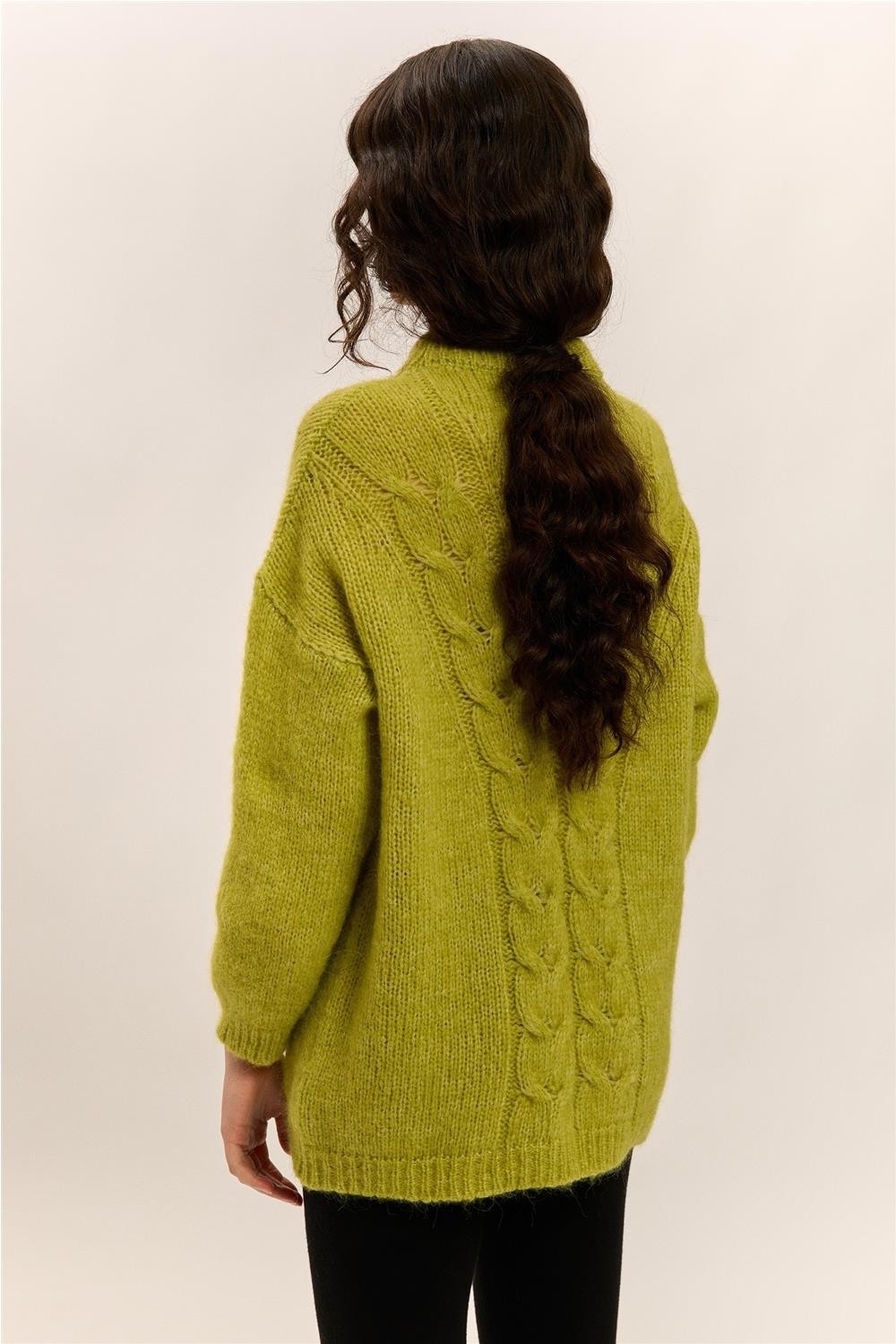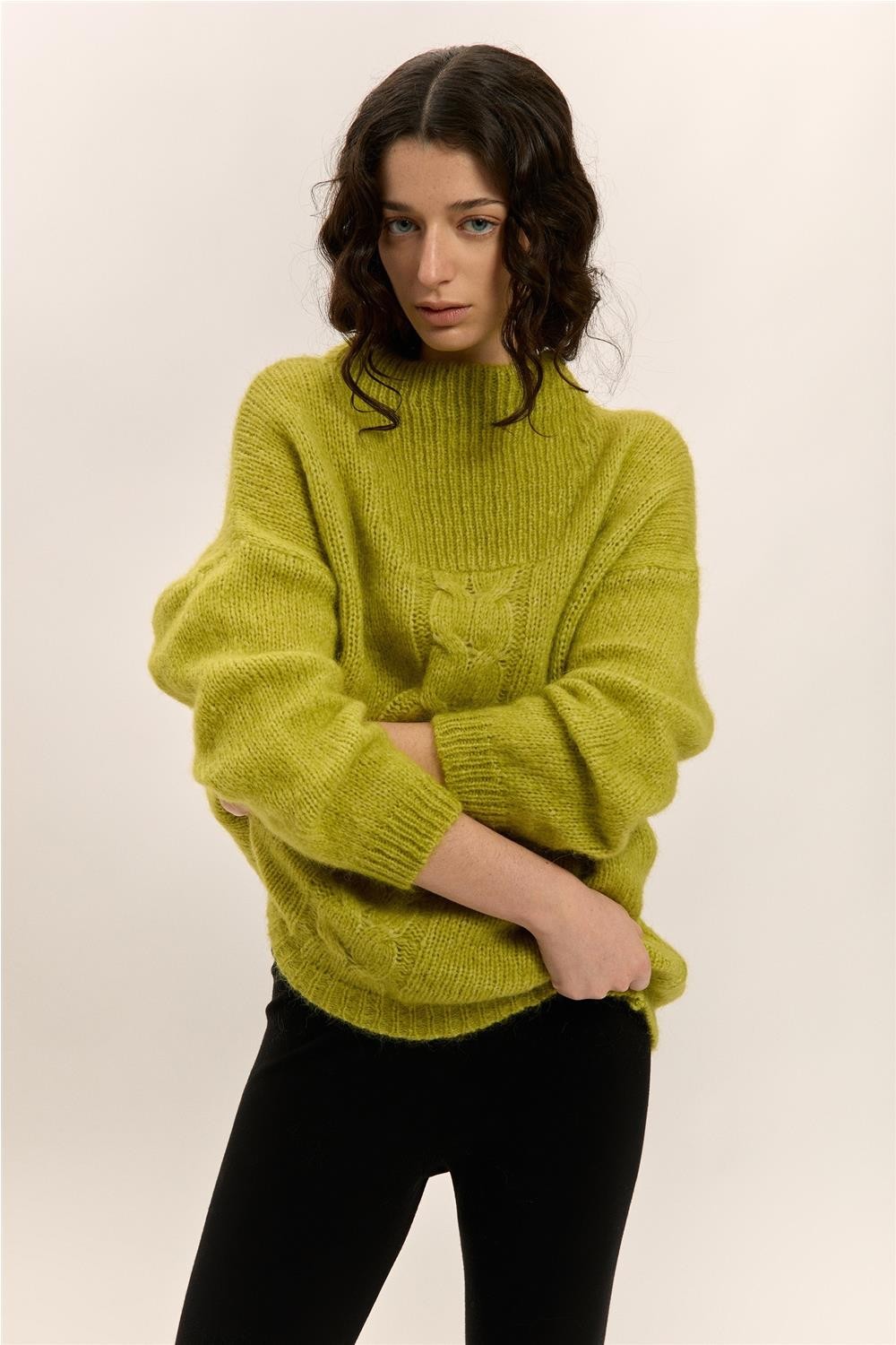 Jersey de punto de mujer chimenea Montoto perlado trenza canalé verde gris 58M2381