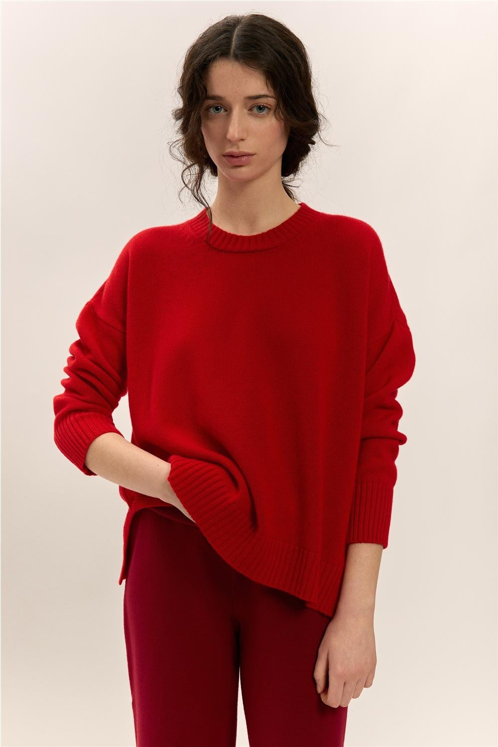 Jersey de punto de mujer cashmere Montoto clásico minimalista suave escarlata 58M2818